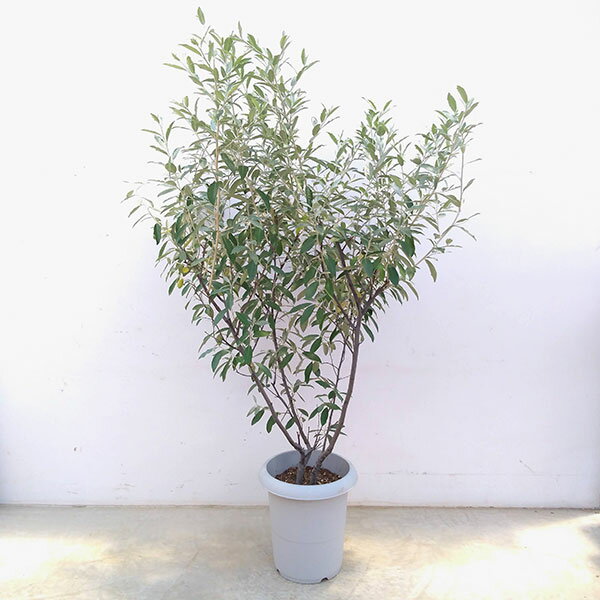 中型 オリーブに似た銀色の葉が美しい落葉樹 芳香花と果実も楽しめる 鉢植え・庭木に ヤナギバグミ花木 庭木の苗/ロシアンオリーブ(ホソバグミ)8号鉢植え【中型送料商品】★入荷から日数が経ったためセール価格となりました。商品の状態は画像と異なる場合があります。★ロシアンオリーブはヨーロッパ南部から中央アジア、ヒマラヤ、中国原産のグミの仲間。オリーブの葉に似た銀色のりん片で覆われた美しい葉が特徴です。初夏に内側が黄色で外側が銀白色の芳香のある花を咲かせ、秋には赤色の果実を実らせます。苗木のうちはないですが、成長すると葉の付け根部分にトゲが多少出てきます。果肉は甘く、ジャムなどにも用いられます。学名:Elaeagnus angustifoliaタイプ:グミ科グミ属の耐寒性落葉小高木樹高:5〜6m日照:日向むき栽培方法:排水と日当たりのよい場所に植えてください。成長が早く萌芽力が強いので、刈り込みに耐えます。春〜夏に有機質肥料を与えます。8号(直径約24cm)鉢植え、鉢下からの高さ約120〜150cmです。鉢の形状や色は画像と異なる場合があります。※写真はイメージです。■お届け地域について ・北海道、沖縄、離島へのお届けは、追加送料(実費)をいただきます。 ロシアンオリーブ(ホソバグミ)8号鉢植えの栽培ガイドインテリアにおすすめの、縁起の良い観葉植物