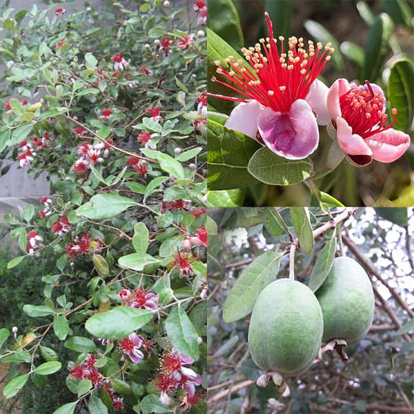NHK趣味の園芸25年11月号掲載花木 庭木の苗/フェイジョア:アポロセレクト接木苗3.5号ポット[樹形が良く実付きもよいアポロの選抜品種 常緑樹 家庭果樹に最適]フェイジョアは南アメリカ原産の常緑広葉低木。花がグアバに似ていて果実はパイナップルの香りがするところから、パイナップルグアバともいわれます。耐寒性・耐暑性とも強く、国内の殆どの地域で果樹として、または花木として栽培されます。果実は表面が灰緑色で、果肉は甘く芳香があります。収穫は10月ころに、熟して落ちたものを拾います。実の大きさは卵をひとまわり小さくしたくらいです。花びらも食用や、料理に添えてご利用ください。アポロセレクトは人気品種のアポロからの選抜種。節間のつまり短く樹形が良く、実付も良い品種です。果実が大きく(長さ7cm前後)、風味・肉質が最もよいおいしい品種です。樹勢が強く、直立します。自家結実性がありますので、1本でも実をつけ、他の品種の受粉樹としても利用できます。異品種を組み合わせると、より実つきがよくなります。結実期は10月頃です。タイプ:フトモモ科の耐寒性常緑低木耐寒性:マイナス10度まで樹高:2.5〜3m開花期:5〜6月結実・収穫期:10月日照:日向むき栽培方法:日当たりのよい場所を好みます。腐植を多く含んだ、水はけの良い砂質土に植えます。冬季、寒風のあたる場所は避けてください。病気・害虫には強く、手間はかかりません。3.5号(直径10.5cm)ポット入り接木1年生、樹高約20〜40cmの苗です。結実開始は6〜7年後からとなります。樹高は多少前後します。お届け時期により葉に虫食いや傷みがある場合があります。フェイジョア:アポロセレクト接木苗3.5号ポット[樹形が良く実付きもよいアポロの選抜品種 常緑樹 家庭果樹に最適]の栽培ガイド接木苗について