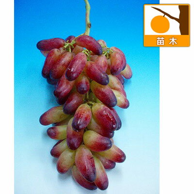 ユニークな形で皮ごと食べられる高級ぶどう 苗木果樹の苗/ブドウ:マニキュアフィンガー接木苗4〜5号ポット果粒はユニークな指の形で、皮ごとパリパリと食べられます。果粒は重さ13g、糖度19度の未体験の味です。自家結実性です。タイプ:ブドウ科の耐寒性落葉樹(つる性)耐寒性:マイナス30度植付け最適期:11月下旬〜3月(最適期は上記のとおりですが、ポット入りの苗ですので、真夏を除き年間を通して植え付け可能です)開花:4月収穫:9月樹高:5〜10m(つる性)日照:日向むき栽培方法:日当たり・水はけのよい場所が適しています。地植えの場合はなるべく深く穴を掘り、有機肥料を元肥えとして施して植え付けます。鉢植えの場合も同様になるべく深い鉢を選んで植えてください。植え付け後は3〜5芽を残し、地際から30cmくらいのところで切戻し、支柱を立て、枝を誘引して止めつけます。仕立て方としてはまっすぐの棒に巻きつけるように上方に伸ばす棒仕立て、またはぶどう棚や垣根に誘引する仕立て方があります。鉢植えの場合はあんどん仕立てにすると良いでしょう。肥料は3月と11〜12月に、根本に有機肥料などを施します。大粒種の場合、自然の状態では果粒数が少なくなりますので、実どまりをよくするために、花の満開時期にジベレリンの100倍溶液に花穂をひたすか、開花直前に花房の先端を1/3ほどきりつめます。また、チッソ肥料が多すぎると葉ばかり茂って実がつきにくいので、窒素分を控えるのも有効です。花後に結実した実には袋かけをして、病虫害や鳥害から守ります。剪定は12月〜1月に、前年に伸びた枝を切り戻してください。お届けする苗は4〜5号(直径12〜15cm)ポット入りの接木1〜2年生苗です。結実開始は2〜3年後からとなります。樹高につきましては、お届け時期により多少前後することがあります。また、夏〜秋のお届け時は虫食いや斑点など葉の状態がきれいでない場合がございますのでご了承ください。写真は結実時のイメージです。※商品のお取り寄せに数日かかる場合があります。※1年生苗は鉢上げして時間が経過していないため、枝数や小根が少なかったりする場合がございますが、生育に問題はございません。■この商品は第二配送センターよりお届けします。下記サービスについてはお受けできません。・メッセージカード・栽培ガイドの添付・ラッピング・代金引換決済・時間帯指定は地域によりご指定がお受けできない場合があります・配送業者の指定ブドウ:マニキュアフィンガー接木苗4〜5号ポットの栽培ガイド接木苗について