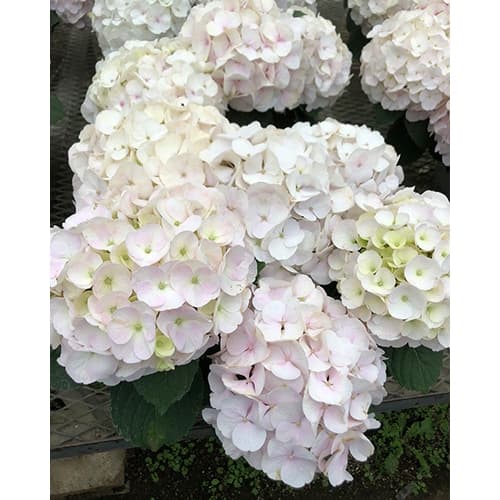 花木の苗 紫陽花 苗花木 庭木の苗/[26年2月中下旬予約]アジサイ:美月(みづき)3.5号ポット美月は白系のテマリ咲き品種。白系の品種は花弁が繊細で傷みやすいものが多いですが、この品種は花弁が強く染みになりにくく長く開花を楽しめます。樹勢もまとまりが良く旺盛で、育て易い品種です。開花が進むとほんのりとピンク色がかってきて花色の変化も楽しめます。★苗木でのお届けです★タイプ:ユキノシタ(アジサイ)科ハイドランジア(アジサイ)属の耐寒性落葉低木樹高:100〜150cm開花期:6月〜7月植付け適期:2月〜5月用途:庭植え、鉢植え日照:日向〜半日陰向き栽培方法:栽培は、戸外で風通しが良く、日当たり〜半日陰の湿り気のある場所が適しています。鉢植えで開花中のものは屋内でも観賞できます。耐陰性がありますが、春と秋はよく日に当てる方が花付きが良くなります。夏場の直射日光は葉焼けをおこすので避けます。肥料は、緩効性肥料を2週間に1回程度2〜3gの置き肥で施すか、週1回2000倍くらいの液肥を与えてください。あじさいは水を沢山必要とします。庭植え、鉢植えとも水切れに注意し、鉢植えの場合は、表土が乾く前にたっぷり水やりをしてください。鉢底から水が流れ出てくる位まで水を与え、受け皿には水をためないようにします。花つきをよくするためには、7月から9月中旬に花がらをカットし、今年伸びた新梢の芽(節)を3〜5個残し剪定します。秋以降に芽を全て剪定してしまうと翌年花が咲かないので注意します。春から夏はアブラムシやカイガラムシ、ダニ類が発生しやすいので、枝や葉の裏側を観察し、薬剤等で防除します。病気はうどんこ病、モザイク病、斑点病、炭そ病に注意し、込んだ枝葉を剪定して通風をよくします。耐寒性は中程度なので、冬季は霜よけをして下さい。鉢植えの場合は冬は凍らないよう管理し、春になったら一回り大きい鉢に植え替えます。アジサイの多くの品種は土壌酸度により花色が変化します。土中にアルミニウムが多いと青色になり、少なければ薄紅色やピンク色に変化します。 アルミニウムは酸性土壌でよく溶ける性質があり、日本の土壌は酸性なので青色になります。ピンク系で咲かせたい場合はピートモスなどアルミが含まれていない資材で鉢植えにします。3.5号(直径10.5cm)ポット入りです。写真は成長・開花時のイメージです。お届け時期により葉がきれいでない状態の場合があります。アジサイは土壌酸度により花色が変化します。栽培環境によっては写真の花色と異なる開花状況となる場合があります。※産地では冬季はハウスで育成されている場合があり、冬季のお届け時でも芽(葉)が出ていることがあります。その場合、露地植えをされる際は寒さで芽が痛む場合がありますので、寒さが緩み凍結しない時期になってから植え付けてください。■2月中旬〜下旬お届けの予約販売です。・注文締切日:2026年2月9日(月)午前7時・別々のご注文をおまとめすることはできません。送料はそれぞれにかかります。・お届け日は2月10日(火)以降にメールでご案内します。お届け日指定はお受けできませんが、曜日・時間帯指定は承ります。(受信できるアドレスでご注文ください)・品種によりお届け時期の変更や、お届けできなくなる場合があります。[26年2月中下旬予約]アジサイ:美月(みづき)3.5号ポットの栽培ガイド7月の庭木のお手入れアジサイアジサイの花色調整アジサイの分類