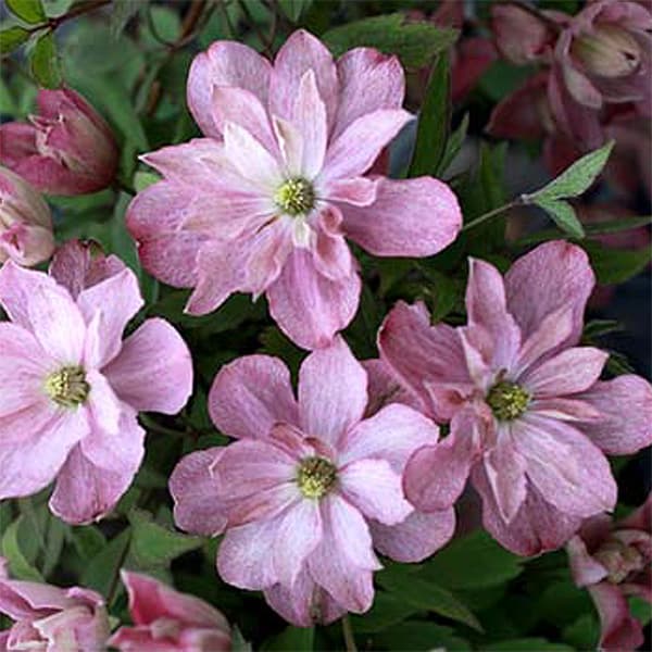 2年生苗クレマチスの苗/[26年2月中下旬予約]クレマチス:モーニング・ティー4.5号ポット(八重咲・パテンス系)柔らかな明るいピンク色で、アンティーク調の雰囲気もある八重咲きのクレマチスです。主張が強過ぎず使いやすい品種。写真は開花時のイメージですが、お届けの際はまだ苗ですのでご了承ください。タイプ:キンポウゲ科の耐寒性落葉多年草(つる性)草丈:1.5〜2.5m花径:10〜12cm開花期:5〜10月植付け適期:9月半ば〜10月と2月〜3月が最適、または4月〜7月に花のつき方:旧枝咲きの早咲き系(前年の旧枝に花がつく)剪定:弱剪定 ・花後の剪定:花柄を摘み取る。新梢を2節残してカット。 ・2月の剪定:古枝に花芽を持っているので、枯れた枝を取り除き、芽の先端を剪定する程度。栽培方法:根が下に伸びますので、植えつけは5号(直径15cm)以上の深鉢を用いてください。植えつけの際は根鉢をくずさないように深植え(地上部の1〜2節が土に埋まるように)してください。後ろにトレリスを立て、つるを誘引してビニールタイなどで固定します。施肥により花芽が形成されますので、立派な花を咲かせるためにはクレマチス専用肥料などを1〜2ヶ月に1回与えます。水遣りは鉢の表面が乾いたらたっぷりと与えます。クレマチスは水を好みますので、庭植えの場合も春〜夏は最低週に一度は水遣りしてください。詳しくはクレマチスの栽培方法をご覧ください。<お届けする株につきまして>★出葉時期にはできるだけ多く葉を残すようにしております。葉に虫食いの跡(穴)の残っている葉をつけてお届けする場合もございますが、事前に虫や病気のチェックの上お手配いたしておりますので予めご了承ください。★性質上、つるの折れや裂けが生じやすい植物です。出荷には十分注意いたしておりますが多少の折れはご容赦ください。万一折れてしまっても脇芽や株元より新芽が出てきますし、芯の部分がつながっていましたらテープなどで補強していただければ再生いたします。★冬季は「地上部がない状態」、もしくは「枯れた状態」でのお届けとなることがございます。<花色について>クレマチスは、肥料・日当り・温度などにより花色がかなり変化します。適肥・日当り・気温15〜20度の条件下では鮮明な花色が出ます。写真は苗の一例です。お届けは1ポットです。■2月中旬〜下旬お届けの予約販売です。・注文締切日:2026年2月9日(月)午前7時・別々のご注文をおまとめすることはできません。送料はそれぞれにかかります。・お届け日は2月10日(火)以降にメールでご案内します。お届け日指定はお受けできませんが、曜日・時間帯指定は承ります。(受信できるアドレスでご注文ください)・品種によりお届け時期の変更や、お届けできなくなる場合があります。[26年2月中下旬予約]クレマチス:モーニング・ティー4.5号ポット(八重咲・パテンス系)の栽培ガイド11月のクレマチスのお手入れ10月のクレマチスのお手入れ9月のクレマチスのお手入れ8月のクレマチスのお手入れ7月のクレマチスのお手入れ12月のクレマチスのお手入れ1月のクレマチスのお手入れ2月のクレマチスのお手入れ3月のクレマチスのお手入れ4月のクレマチスのお手入れ5月のクレマチスのお手入れ6月のクレマチスのお手入れクレマチスの栽培方法クレマチスの冬季お届け形態についてクレマチスの選び方