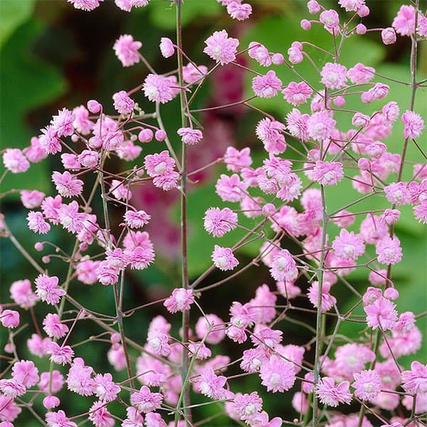 高性八重咲カラマツソウ!ヒューイッツダブル草花の苗/[26年2月中下旬予約]タリクトラム:ヒューイットダブル3.5号ポット幻想的な花を咲かせる八重カラマツソウです。高性のカラマツソウの中では唯一の八重咲品種。メリクロン苗なので性質も安定しています。ヒューイッツダブルは、デラバイ(中国原産の高性カラマツソウ)の園芸改良種。カスミソウに似た八重咲きの藤紫色の小花を株一杯にたくさん咲かせます。花もちが良く、切り花にもおすすめです。学名Thalictrum delavayi 'Hewitt's Double'タイプキンポウゲ科カラマツソウ属の耐寒性多年草草丈60〜100cm葉張り60cm開花期初夏〜夏日照日向〜半日陰用途庭植え・プランター・ロックガーデン・切花・茶花 栽培方法:腐葉土を配合したふかふかの排水・通気性のある土壌を好みます。夏は半日陰を好み、秋〜春にかけては日当たりが良い場所が理想的です。真夏の高温多湿に気をつけましょう。耐寒性はありますが、夏の高温多湿を嫌うため、できれば夏場は半日陰で風通しの良い場所がよいです。写真は成長時のイメージですが、お届けの際は苗の状態です。■2月中旬〜下旬お届けの予約販売です。・注文締切日:2026年2月9日(月)午前7時・別々のご注文をおまとめすることはできません。送料はそれぞれにかかります。・お届け日は2月10日(火)以降にメールでご案内します。お届け日指定はお受けできませんが、曜日・時間帯指定は承ります。(受信できるアドレスでご注文ください)・品種によりお届け時期の変更や、お届けできなくなる場合があります。