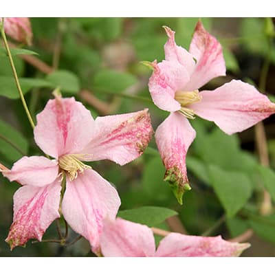 2年生苗クレマチスの苗/[26年2月中下旬予約]クレマチス:スターレット4.5号ポット(モンタナ系)半八重の小輪は、淡い桜色から咲き進むにつれてモーヴ色に変わってゆきます。濃い緑色の葉と合わさってシックな色合いになり、株の充実具合によっては花弁の数が変わるので、表情豊かな咲き姿となります。高温多湿と夏の乾燥に弱く、風通しのよい場所で、株元が半日陰くらいがちょうど良いです。肥料少なめでの管理がポイント。株が充実して風通しが悪くなるほど枝が混んできた場合は、花後早めに枝をすくように間引きの剪定を行います。タイプキンポウゲ科の耐寒性落葉多年草(つる性)草丈3〜5m花径3〜3.5cm花色薄ピンク開花期4〜5月植付け適期9月半ば〜10月と2月〜3月が最適、または4月〜7月に花のつき方旧枝咲きの早咲き系(前年の旧枝に花がつく)剪定弱剪定・花後の剪定花柄を摘み取る(花首下1〜2節で剪定)。・夏以降の強い剪定は翌春に花が咲かなくなるので厳禁。・2月の剪定古枝に花芽を持っているので、枯れた枝を取り除き、芽の先端を剪定する程度。栽培方法:庭植え、鉢植えで栽培します。苗の根鉢をくずさないようにポットから抜き、地上部の茎の1〜2節が土に埋まるように深植えします。鉢植えの場合は、根が下に伸びますので、5号(直径15cm)以上の深鉢を用い、クレマチス専用培養土をご利用ください。トレリスやフェンスを立て、つるが伸びてきたら誘引して紐等で固定します。施肥により花芽が形成されますので、春から初秋の生育期間に固形肥料を1〜2ヶ月に1回与えます。水遣りは鉢の表面が乾いたらたっぷりと与え、水切れさせないようにします。庭植えの場合も春〜夏は週に一度水遣りしてください。植え替えや剪定は冬季が適期です。大株になってからの植え替えは避けます。剪定方法はクレマチスの系統により異なります。詳しくはクレマチスの栽培方法をご覧ください。お届けするクレマチス(苗)は4.5号(直径13.5cm)ポット入りです。<お届けする株について>・株の生育のため、虫食い跡のある葉を切らずにお届けする場合があります。・つるが折れやすい植物です。多少の折れはご容赦ください。脇や株元から新芽が出ます。 芯がつながっていれば枝先は生きているのでテープで補強してください。・冬季は地上部が枯れた状態です。<花色について>クレマチスは、肥料・日当り・温度などにより花色がかなり変化します。適肥・日当り・気温15〜20度の条件下では鮮明な花色が出ます。写真は苗の一例です。お届けは1ポットです。■2月中旬〜下旬お届けの予約販売です。・注文締切日:2026年2月9日(月)午前7時・別々のご注文をおまとめすることはできません。送料はそれぞれにかかります。・お届け日は2月10日(火)以降にメールでご案内します。お届け日指定はお受けできませんが、曜日・時間帯指定は承ります。(受信できるアドレスでご注文ください)・品種によりお届け時期の変更や、お届けできなくなる場合があります。[26年2月中下旬予約]クレマチス:スターレット4.5号ポット(モンタナ系)の栽培ガイド11月のクレマチスのお手入れ10月のクレマチスのお手入れ9月のクレマチスのお手入れ8月のクレマチスのお手入れ7月のクレマチスのお手入れ12月のクレマチスのお手入れ1月のクレマチスのお手入れ2月のクレマチスのお手入れ3月のクレマチスのお手入れ4月のクレマチスのお手入れ5月のクレマチスのお手入れ6月のクレマチスのお手入れクレマチスの栽培方法クレマチスの冬季お届け形態についてクレマチスの選び方