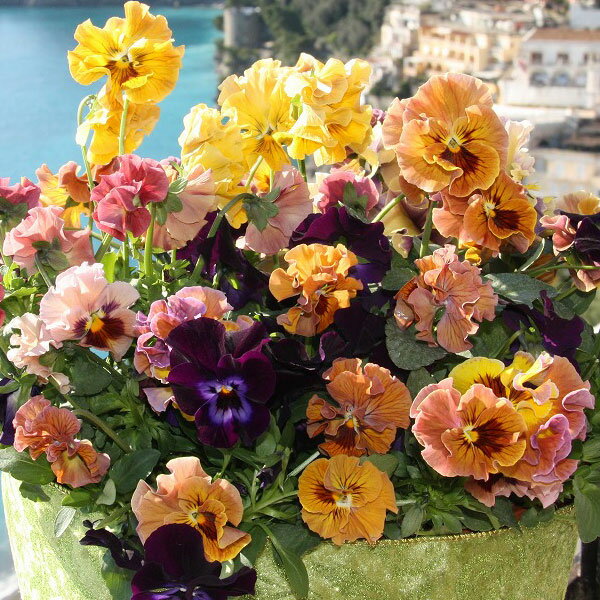 初売りセール ニュアンスカラーのフリル咲草花の苗/見元園芸さんのパンジー:ファランドール3-3.5号ポット* 3株セット高知県の育種家、見元一夫氏のビオラ。やわらかな色あいと可憐な花で大人気です。毎年新しい品種も誕生し、さらに魅力的に。可憐な見元パンジーの世界をお楽しみください。ラベンダー色の人気のフリルパンジーです。色の濃淡がありますが波のような花弁は気品のある華やかさがあり春の演出には欠かせない品種です。花色は色幅があります。個体により気温が低くなってくると色が薄くなってくるものがあります。タイプスミレ科スミレ属の耐寒性1年草開花期10月下旬〜5月株張り15〜20cm草丈15〜25cm花径約3.5〜4.5cm摘芯不要切り戻し不要花がら摘み必要日照半日以上直射日光の当たる屋外植込み株数の目安 鉢プランター:3株/30cm・横長プランター:3株/65cm・花壇:9〜10株/1平方メートル育て方:日照不足になると、葉が黄色くなったり、花付きが悪くなるため、日の当たる場所で管理して下さい。水あげは土の表面が乾いてからたっぷりと与えてください。冬期は夕方以降に水やりをすると、土が凍ってしまうことがあるため、できるだけ午前中に与えて下さい。植え付け後は10日に1回程度、液体肥料を与えてください。長く花を楽しむために、終わった花はこまめに摘み取って下さい。花がらは花茎の根元から指で軽くひねるようにし、花茎ごととり除きます。 写真は成長時(開花時)のイメージです。※花色に色幅があります。※個体により気温が低くなってくると色が薄くなってくるものがあります。。 ※写真はイメージです。見元園芸さんのパンジー:ファランドール3-3.5号ポット* 3株セットの栽培ガイド花がらつみパンジー・ビオラの栽培方法パンジー・ビオラのコンテナガーデン