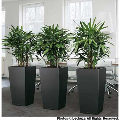 鉢レチューザプランター:キュービコ30チャコール潅水装置付レチューザ(Lechuza)はドイツ・プレイモビル社製のモダンで堅牢な樹脂鉢。スタイリッシュなデザインと質感を持ち、軽量で紫外線や衝撃に強く、外気による変色や霜への耐久性もあります。その上、通気性に勝れた底面潅水システム付きなので、水やりの手間を省き植物の根を健全に育てることができます。残水量もひと目でわかり、水管理も楽です。詳しくはこちらをご覧ください。水を吸い上げるために必要な独自開発のPON(クレイ)が予め付いているので、あとは用土と植物を用意するだけ。セラミスでも培養土でも栽培できます。観葉に限らず、お好みの植物を植えてください。キュービコはスタイリッシュなフォルムが存在感を主張する角型・背高のプランター。ホテルのロビーからプライベート・ロフトまで、どんなロケーションにも調和します。本体(外鉢)とライナー(内鉢)がセットになっていて、植物はライナーに植え込みます。植物の入れ替えやお手入れはライナーを取り外して行うことができるので簡単です。室内・屋外の両方でご利用いただけます。キュービコ30チャコール潅水装置付色:チャコールサイズ:・外鉢:外寸/縦30cm、横30cm、高さ56cm・ライナー(内鉢):外寸/縦28cm、横28cm、高さ32cm 内寸/縦25cm、横25cm、高さ31.5cm (底面灌水セット設置時の高さ23.5cm)材質:ポリプロピレン(本体)、ポリエチレン(ライナー)、天然軽石(クレイ)塗装:最高級ポリウレタン塗装土容量:16リットル水容量:5リットルクレイ量:1.5リットル重量:4kgセット内容:本体(外鉢)、ライナー(内鉢)、サブ・イリゲーションセット(底面潅水セット)、説明書鉢の底面には水抜き用の穴があります。ハイドロカルチャーとして利用の場合は底面のスクリューを締めて使用。スクリューをはずせば水抜き穴となるので、普通の鉢と同様に利用できます。写真の植物は商品に含まれません。※写真はイメージです。■この商品はメーカー直送にてお届けのため、下記サービスについてはお受けできません。・時間帯指定配達・日曜・祝日のお届け・メッセージカードの添付・代金引換決済 レチューザプランター:キュービコ30チャコール潅水装置付の栽培ガイドレチューザ(Lechuza)の底面給水鉢シリーズドイツ製底面灌水機能美プランター:レチューザプランター取扱説明書底面潅水プランター・レチューザ