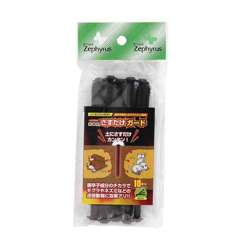 唐辛子成分(カプサイシン)配合! カプサイシンとは、唐辛子を辛くする成分で、動物の目や皮膚の弱いところに付着すると強い刺激と痛みを発生させます。 「辛み」は痛み同様「慣れにくい」感覚と言われ、成分自体は無毒です。 こちらの商品は、ゆっくり溶けだすスティックタイプ。 土にさすだけで簡単です。 種 類:スティックタイプ 入 数:10本入×50袋類似商品はこちら害獣忌避剤 まくだけガード 200g 20袋 21,908円害獣忌避剤 置くだけガード 50g×4袋入り 21,908円害獣忌避石 逃げまんねん! 忌避石 小石タイプ42,386円害獣忌避石 逃げまんねん! 忌避石 小石タイプ33,308円害獣忌避液 逃げまんねん! 液体タイプ 50044,411円害獣忌避剤 逃げまんねん! 固形タイプ 16個65,609円害獣忌避用品 ウルフピー 4枚入り 24箱 マ64,591円忌避剤 忌避スプレーネズミZ 480ml 3026,127円忌避剤 モグラを寄せつけない 200g 30本25,826円新着商品はこちら2026/1/1610袋 硫酸マグネ 20kg 養液栽培 単肥 25,483円2026/1/1610袋 硝酸石灰4水塩 20kg 養液栽培 単32,819円2026/1/1610袋 塩化カルシウム 25kg 養液栽培 単45,045円再販商品はこちら2026/1/1610巻 シートまもるテープ 白 80mm×209,903円2026/1/16ペレット種子 300粒 ミズナ 京みぞれ 品番580円2026/1/16ペレット種子 100粒 レタス マリア 品番3522円2026/01/17 更新天然素材で安心・強力 忌避剤