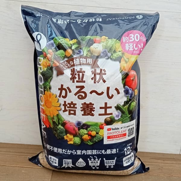 [送料無料]粒状かる〜い培養土 12リットル入り5袋セット(プロトリーフ)根の張りが良く植物がぐんぐん成長!粒々の色が変わるので水やりのタイミングがわかりやすくなっています。たい肥を使わないので虫がよりつきにくく、虫が苦手な人にぴったりです。手が汚れにくいから作業もラクに行えます。原料:パーライト、鹿沼土、赤玉土、軽石、速効性化成肥料、緩効性化成肥料 等容量:12リットル入り5袋セット(合計60リットル)■この商品はメーカー直送にてお届けのため、下記サービスについてはお受けできません。・時間帯指定(午前・午後の指定のみお受けできます。夜間指定はできません)・メッセージカードの添付・代金引換決済■お届け地域について ・北海道、沖縄、離島へのお届けは、追加送料(実費)をいただきます。 [送料無料]粒状かる〜い培養土 12リットル入り5袋セット(プロトリーフ)の栽培ガイド鉢に入る土の容量と植える苗の数