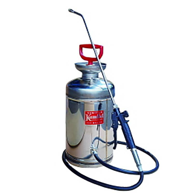電池不要の手動蓄圧式、蓄圧噴霧器3段式伸縮ノズル(二頭口)6Lタイプ。 軽くて簡単で使い易いやすい、女性や年配の方にもラクに操作できる様に設計された蓄圧式噴霧器です。 自転車の空気入れのように本体のハンドルを上下させて蓄圧するだけで使う事ができます。 ノズルは二頭口でキリの広がりや方向も調節できるようになっている他、ノズルパイプも3段階で伸縮して使いやすい長さに調節できます。 軽量で、肩掛けストラップも付いているから、肩に掛けながら場所を選ばず使えます。 消毒液・除草剤・薬肥・潅水・マシン油剤・石灰硫黄合剤など色々な用途でご使用頂けます。 関連商品はこちらから ・その他の噴霧器 サイズ タンク(約):ボトル直径19×高さ43cm ホース長さ(約):180cm ノズルの長さ(約):40cm?96cm 容量 6L 商品重量 (約)1.29 kg 素材・材質 ポンプ:ポリプロピレン タンク:ポリエチレン 体圧ホース:軟質ビニール樹脂 ノズル・ノズルパイプ:真鍮製(クロームメッキ仕上げ) キーワード 蓄圧式 噴霧 二頭口 散布 消毒 除草剤 薬肥 潅水 マシン油剤 石灰硫黄合剤 電池不要 手動 ノズルパイプ伸縮 軽い 軽量 コンパクト 肩掛けストラップ付き 202110-03