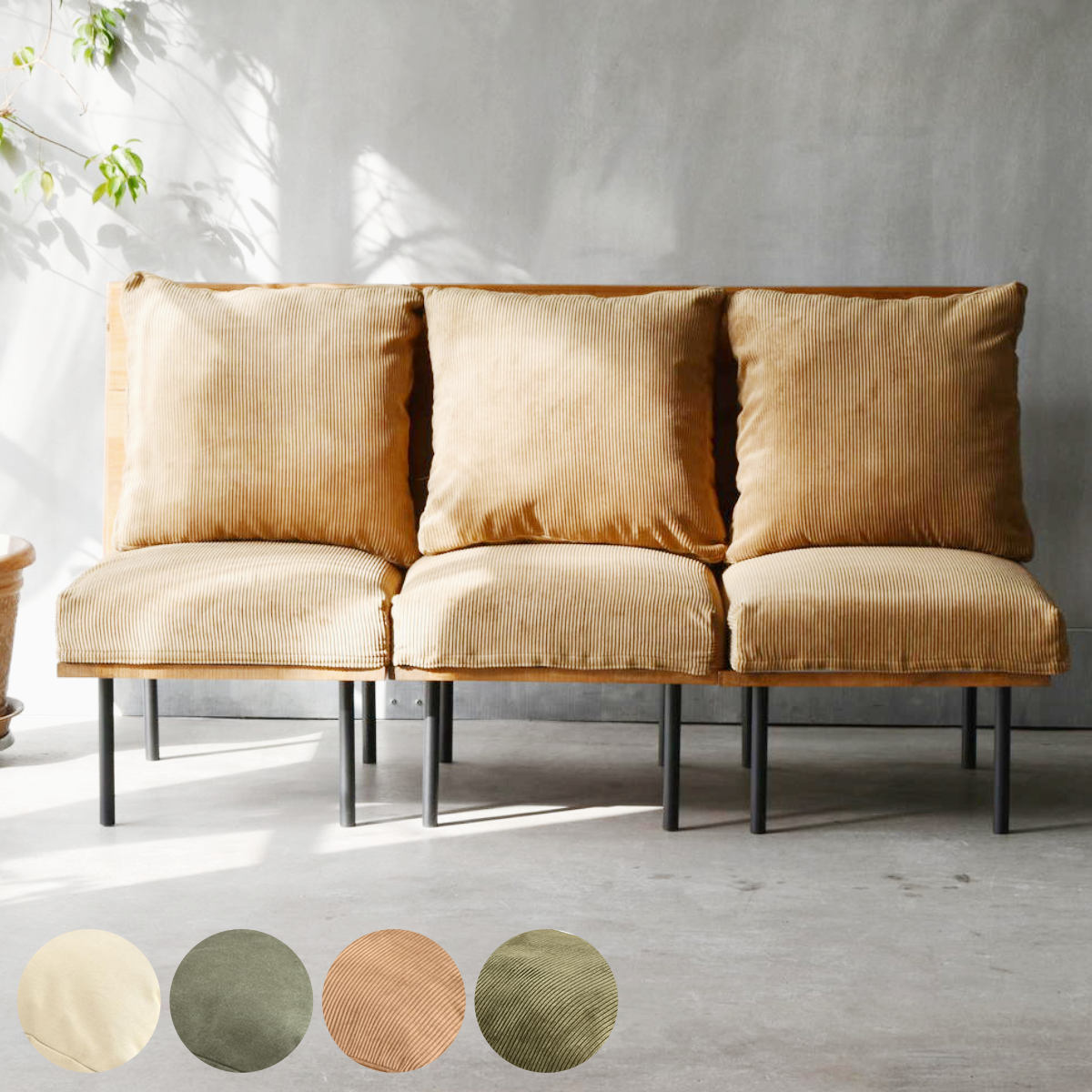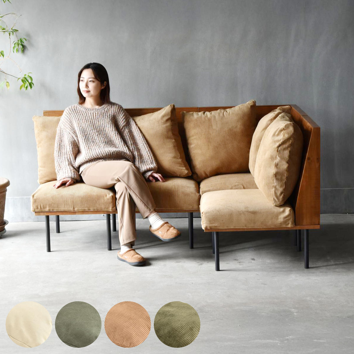 サイズ約 幅170×奥行118×高さ59.5?83.5(cm)座面高:約 18?42(cm)重量約 60kg内容量1人掛け:3脚L字角ソファ:1脚材質座板:ラバーウッドの天然木(水性樹脂塗装)背板:杉の天然木(水性樹脂塗装)脚:スチールパイプ(粉体塗装)座クッション:パイプ、Sバネ、合板、ウレタンフォーム、ウレタンチップ背クッション:シリコンフィル表面生地:ポリエステル60%、綿40%種類キャンバスベージュ、キャンバスグリーン、コーデュロイブラウン、コーデュロイグリーン生産国中国製耐荷重約240kg組立状態お客様組立品梱包サイズ幅72×55×20(cm)×3幅55.5×55.5×40.5(cm)×2幅70×30.5×18(cm)幅72×69×18(cm)お届け梱包数7個口注意事項※商品ページ内には別の商品を含む画像を使用しています※天然木を使用しているため、色合いや木目などが画像と異なる場合がございます備考カバー:手洗い洗濯、ドライクリーニング可能区分返品・キャンセル区分(不可)ソファ 3人掛け 幅170cm L字型 組み合わせ infiniteおすすめポイント3人掛けL字型ソファ1人掛けソファ3脚、L字角ソファ1脚の4点セット。連結金具で連結することで、お部屋の角にぴったり沿うコーナーソファに。2脚+2脚で対面レイアウトでも、単独でもお使いいただけます。ロータイプの脚に付け替えることも可能です。自由にレイアウトができるInfinite (インフィニット) シリーズ連結・L字・ひじ掛け・オットマンそれぞれを使って、レイアウトは自由自在。同じ部屋に設置するのも良し、違う部屋で使うのも良し。お家のトータルコーディネートができる優れた家具シリーズです。まずは何から揃えますか?考えただけでもわくわくしてきます。自分好みのレイアウトを探してどんどん揃えてお楽しみください。商品詳細キャンバス(帆布)生地エイジング加工を施すことで、使い込んだジーンズのような深みのある表情を実現。古木風フレームとの相性も抜群で、ヴィンテージ感漂うデザインになります。コーデュロイ生地畝が広く、ボリューム感のある毛足の長い柔らかなコーデュロイ生地です。光の加減によって印象が変化し、豊かな温かみを感じさせてくれます。ズレにくい全面ループ座面クッションカバーは全面ループの面ファスナーで、乗ったり座ったりしてもカバーがずれることがなく、しっかりと密着します。背もたれのクッションは、ファスナー着脱仕様で取り替えが簡単です。また、別売りでカバーの販売もございますので、洗い替え用や取り替え用にご利用ください。※カバーは、手洗い洗濯、ドライクリーニングができますエイジング加工で無骨さと温もりが共存する天然木のフレームソファの背と座面下部のフレームはラバーウッドの天然木にステイン塗装を施し、職人による研磨作業を重ね、使い込まれた古木風の風合いを表現。木目や質感が際立ち、使い込むほどに味わいが増す、素朴で力強いデザインが特徴です。スタイリッシュな後ろ姿壁で隠すのがもったいない、天然木のフレームが並ぶ後ろ姿は、リビングの緩やかな仕切りとしてもぴったり。エイジング処理をかけた木製フレームとブラックスチールの無骨さがおしゃれなバックスタイル。床生活の方も快適なロータイプにもブラックスチールの脚を外して、アジャスターをセットすれば、ローソファに変身。同シリーズの昇降テーブルなら、ローソファにぴったりの高さにも対応できます。コンパクト設計で搬入搬出ラクラク新生活のスタートや引っ越しの負担を軽減モジュール式ソファは個々がコンパクト設計なので、搬入搬出が驚くほど簡単。狭い廊下やエレベーターでもスムーズに運べるため、新生活のスタートや引っ越し時の負担を大幅に軽減します。組み合わせで叶える理想のソファセット1人掛けソファ、L字角ソファ、肘掛け付きソファ、オットマンを自由に組み合わせて、快適なダイニングやL字コーナースペースを実現。家族や友人との団らんを豊かにします。※連結金具が付属していますカラーサイズ対応しているパーツ・オプション交換用替えカバーL字角ソファ用1人掛けソファ用infinite専用交換用替えカバーL字角ソファ用infinite専用ヘッドレスト後付けinfinite専用シリーズ紹介ソファ1人掛け幅52cmソファ1人掛けL字角ソファソファ1人掛け収納庫肘置きオットマン座面高42cmソファ4人掛け幅220cmオットマン付ソファ3人掛け幅170cmL字型【▲このページの商品】関連キーワード:ラバーウッド 杉 アームレス 背もたれ オシャレ お洒落 3人 三人掛け 3人用 家具 インテリア リビング イス 椅子 いす チェアー ロースタイル 布 生地 ベージュ グリーン ブラウン 茶 緑 カーキ 自由 ダイニング キャンバス コーデュロイ ダイニングチェア コーナー LH19162