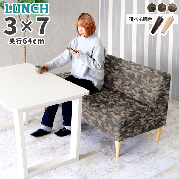 Lunch 3×7 D64 迷彩生地サイズ約幅1550 奥行き640 高さ790 mm座面高さ:450 mm脚の高さ:200 mm梱包サイズ:幅1655 奥行き830 高さ715 mm材質[本体]ウレタンフォーム[脚]天然杢[張地]綿100%カラーカーキ/ブラウン/ベージュからお選び下さい。※モニターなどの閲覧環境によって、実際の色と異なって見える場合がございます。重量約25kg仕様日本製完成品(脚のみお客様取り付け)ローソファとしても使えるアジャスター付属カバー取外し不可脚:5本ブランド 送料送料無料※離島は送料別途お見積もり。納期ご注文状況により納期に変動がございます。最新の納期情報はカラー選択時にご確認ください。※オーダー商品につき、ご注文のキャンセル・変更につきましてはお届け前でありましても生産手配が済んでいるためキャンセル料(商品代金の50%)を頂戴いたします。※商品到着までの日数は、地域により異なりますご購入時にお届け日の指定がない場合、最短日での出荷手配を行いメールにてご連絡させていただきます。配送・開梱設置について※離島は送料別途お見積もりいたしましてご連絡いたします。【ご注意ください】離島・郡部など一部配送不可地域がございます。配送不可地域の場合は、通常の配送便での玄関渡しとなります。運送業者の便の都合上、地域によってはご希望の日時指定がお受けできない場合がございます。建物の形態(エレベーターの無い3階以上など)によっては別途追加料金を頂戴する場合がございます。吊り上げ作業などが必要な場合につきましても追加料金はお客様ご負担です。サイズの確認不十分などの理由による返品・返金はお受けできません。※ご注文前に商品のサイズと、搬入経路の幅・高さ・戸口サイズなど充分にご確認願います。備考※製造上の都合や商品の改良のため、予告なく仕様変更する場合がございますので予めご了承ください。当店オリジナル家具を全部見る管理番号0000a23901/0000a23902/0000a23903/メーカー希望小売価格はメーカーカタログに基づいて掲載しています■おすすめラインナップこのページは Lunch 3×7 D64 迷彩生地のページです。ボタンとステッチからなる背もたれのデザインは、シンプルながらおしゃれな印象を感じさせます。落ち着きのある仕上がりで、モダンやナチュラル、北欧テイストはもちろんレトロな雰囲気にも馴染み置き場所を選びません。肘のないアームレスソファ。スッキリとして圧迫感をやわらげるので、空間の限られるコンパクトな部屋やワンルーム、部屋を広々と見せたい場合などにおすすめです。ダイニングテーブルと合わせた際にも、横から座りやすく日常の小さなストレス軽減にも◎。座面の奥行は足を床につけてきちんと座れる43cm。ダイニングテーブルと合わせて使うのにぴったりなサイズです。※中のクッションのふくらみにより表記サイズに多少の誤差がございます。ソファには2種類の脚が付属しています。ロースタイルで床に近いゆったりとした生活におすすめなアジャスター脚タイプ。そして木製脚は長さ20cm。カラーは[ナチュラル]と[ダークブラウン]の2色をご用意しました。お部屋の雰囲気に合わせてお好みの脚色をお選びください。基本の8型、奥行2型の全部で16型をご用意しました。展開が多いので単体でも組合せでも生活スタイルに合わせて丁度良い大きさが見つけられます。