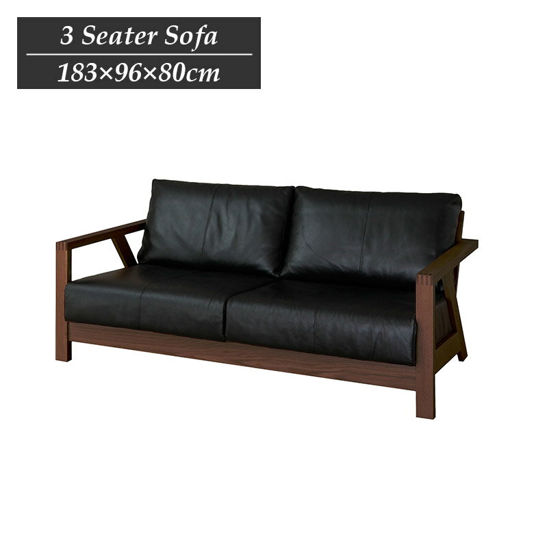 商品について ■商品の特徴 フレームにウォールナット材を使用した高級感のあるソファ。 張地にはブラックの本革を使用しています。 深みのある色味が空間に上質な雰囲気を演出します。 背面は美しい格子デザインになっており、空間の間仕切りとしてご使用いただくのもおすすめです。 ■サイズ 幅183cm×奥行96cm×高さ80cm×座面高さ43cm ■素材 [主材]ウォールナット無垢・突板 [張地]本革 ■塗装 ウレタン塗装 ■重量 約62.2kg ■製造国 ベトナム ■備考 保証期間3ヵ月 ※こちらの商品はメーカーからの取り寄せとなります。 在庫確認後改めて納期をお知らせいたします。 お急ぎの方、また購入をご検討の方は事前に在庫をお問い合わせください。 ※モニターの発色具合により、実際の色味と異なる場合がございます。予めご了承ください。 ■送料 送料無料 ※離島はご注文を承れません。 ※一部配送地域で中継料などが発生し、別途追加送料をお願いする場合がございます。予めご了承ください。3人掛けソファ レザーソファ 本革 木製フレーム 幅185cm 和風 和モダン ウォールナット 本革張り ブラック 黒 肘付き 北欧 おしゃれ シンプル ウッドフレーム ソファー 3人掛け アームソファ ブラウン 木枠 関連商品 【リビングテーブル】 【サイドテーブル】 【幅185cmソファ】 【幅205cmソファ】 【オットマン】