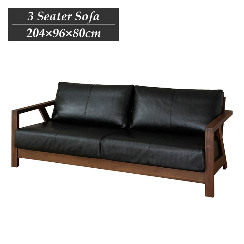 商品について ■商品の特徴 フレームにウォールナット材を使用した高級感のあるソファ。 張地にはブラックの本革を使用しています。 深みのある色味が空間に上質な雰囲気を演出します。 背面は美しい格子デザインになっており、空間の間仕切りとしてご使用いただくのもおすすめです。 ■サイズ 幅204cm×奥行96cm×高さ80cm×座面高さ43cm ■素材 [主材]ウォールナット無垢・突板 [張地]本革 ■塗装 ウレタン塗装 ■重量 約66.2kg ■製造国 ベトナム ■備考 保証期間3ヵ月 ※こちらの商品はメーカーからの取り寄せとなります。 在庫確認後改めて納期をお知らせいたします。 お急ぎの方、また購入をご検討の方は事前に在庫をお問い合わせください。 ※モニターの発色具合により、実際の色味と異なる場合がございます。予めご了承ください。 ■送料 送料無料 ※離島はご注文を承れません。 ※一部配送地域で中継料などが発生し、別途追加送料をお願いする場合がございます。予めご了承ください。ソファー 3人掛け レザーソファ 本革 木製フレーム 幅205cm ウォールナット 北欧 和風 和モダン おしゃれ シンプル 3人掛けソファ 本革張り ブラック 黒 ウッドフレーム アームソファ ブラウン 木枠 肘付き 関連商品 【リビングテーブル】 【サイドテーブル】 【幅185cmソファ】 【幅205cmソファ】 【オットマン】