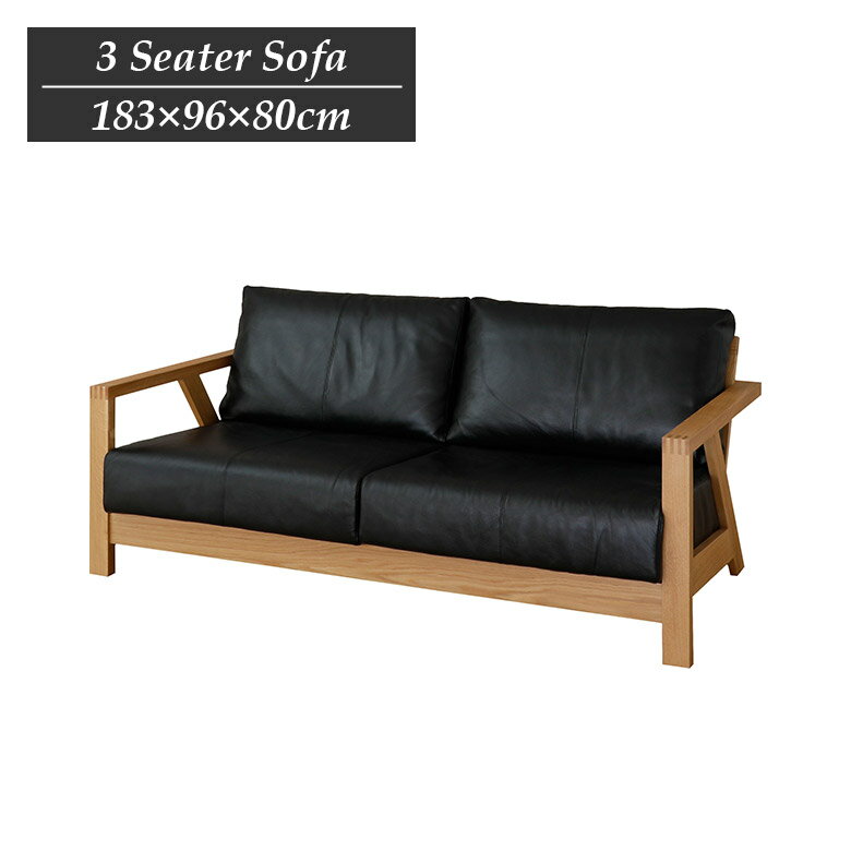 商品について ■商品の特徴 フレームにホワイトオーク材を使用した高級感のあるソファ。 張地にはブラックの本革を使用しています。 空間に落ち着きと華やかさを与えます。 背面は美しい格子デザインになっており、空間の間仕切りとしてご使用いただくのもおすすめです。 ■サイズ 幅183cm×奥行96cm×高さ80cm×座面高さ43cm ■素材 [主材]ホワイトオーク無垢・突板 [張地]本革 ■塗装 ウレタン塗装 ■重量 約62.2kg ■製造国 ベトナム ■備考 保証期間3ヵ月 ※こちらの商品はメーカーからの取り寄せとなります。 在庫確認後改めて納期をお知らせいたします。 お急ぎの方、また購入をご検討の方は事前に在庫をお問い合わせください。 ※モニターの発色具合により、実際の色味と異なる場合がございます。予めご了承ください。 ■送料 送料無料 ※離島はご注文を承れません。 ※一部配送地域で中継料などが発生し、別途追加送料をお願いする場合がございます。予めご了承ください。3人掛けソファ レザーソファ 本革 木製フレーム 幅185cm 和風 和モダン ホワイトオーク 本革張り ブラック 黒 肘付き 北欧 おしゃれ シンプル ウッドフレーム ソファー 3人掛け アームソファ ナチュラル 木枠 関連商品 【リビングテーブル】 【サイドテーブル】 【幅185cmソファ】 【幅205cmソファ】 【オットマン】