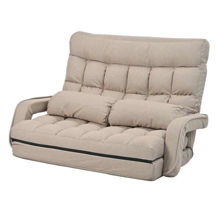 ◆ 01 【4wayで使える座椅子】 シーンや体勢に合わせて座椅子の形を変えられます。一番くつろげる姿勢でお使いください。 「座椅子スタイル」「足伸ばしスタイル」「ごろ寝スタイル」「分離式スタイル」 ◆ 02【安心の日本製ギア、14段階調節可能】 背もたれ部分にKoYo製の14段階ギアを採用し、スムーズにギア調整が可能です。様々な座り方の要求を満たすことができます。 背中はフラットから90度の直立まで楽に調整でき、高齢者にも若者にもフィットし、楽しい時間を過ごすことができます。 ◆ 03【クッション付き】 本体と同色のクッションが付属し、腰に当てクッションまたは枕として使用できます。 ◆ 04【肘掛け付きでより快適】 肘掛けにクッションがたっぷり、読書の際などに肩や腰への負担が軽減でき、長時間使っても疲れにくい。 また、肘付けはリクライニングと連動して動くので、邪魔にならない。 ◆ 05 【小物収納設計】 片側に収納袋とカップバッグが付き、より快適に過ごすことができます。 イヤホン、モバイル?バッテリーなどの小物収納に最適な収納袋。 座ったまま飲み物が簡単に取れるカップバッグのデザイン。 ◆ 07【高品質な座り心地】 厚さ約20cmの座面で、体圧をバランスよく分散させることで体にフィットし、体を優しく包み込んでくれます。 長時間使用しても疲労をあまり感じません。 ◆ 08【移動楽々】 女一人でも簡単に運べますので、新生活や引越しに超ススメ! ◆ 09【折り畳み簡単】 背もたれに折りたたみ用のギアが入っています。折りたたむとコンパクトにまとめられるので、スペースを節約することができます。 寝室、客間とベランダにとても適しています。