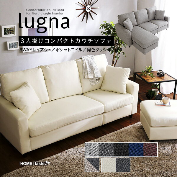 カウチにもオットマンにも、気軽にスタイルチェンジできる3人掛けソファ。 ●ポケットコイルとS字バネのWクッション採用で、しっかりとした弾力感のある座り心地。 ●PVCやファブリックなど豊富な8色展開。 ●組み立ても簡単! ●【商品サイズ】(約)幅176cmx奥行76cm〜127cmx高さ82cm ●【商品重量】(約)46KG ●【梱包サイズ】(2-1)(約)幅117x奥行77x高さ46.5cm ●(2-2)(約)幅66x奥行77x高さ46.5cm ●【梱包重量】(2-1)(約)31kg ●(2-2)(約)20kg ●【素材】構造部材本体:木製フレーム脚部:天然木(高さ8cm) ●張り材ファブリック:ポリエステル100% ●合成皮革:塩化ビニル樹脂 ●クッション材:Sバネ、ポケットコイル、ウレタン ●沖縄、離島に関しましては別途送料がかかります。 ●日時指定は承りかねます。 ●配達場所・天候・交通状況等により、配達にお時間がかかる場合がございます。 ●改良のため品質に差し支えの無い程度で仕様変更がある場合がございます。 ●イメージ違い、注文間違い等お客様都合と判断される商品の交換、返品は承りかねます。