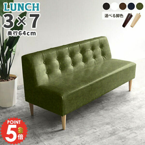 Lunch 3×7 D64 合皮生地サイズ約幅1550 奥行き640 高さ790 mm座面高さ:450 mm脚の高さ:200 mm梱包サイズ:幅1655 奥行き830 高さ715 mm材質[本体]ウレタンフォーム[脚]天然杢[張地]ポリウレタン100%(合皮)カラー合皮ダークブラウン/合皮ホワイト/合皮ブラウン/合皮ナイトブルー/合皮オリーブからお選び下さい。※合皮ダークブラウンは非常にブラックに近い色です。※モニターなどの閲覧環境によって、実際の色と異なって見える場合がございます。重量約25kg仕様日本製完成品(脚のみお客様取り付け)ローソファとしても使えるアジャスター付属カバー取外し不可脚:5本ブランド 送料送料無料※離島は送料別途お見積もり。納期ご注文状況により納期に変動がございます。最新の納期情報はカラー選択時にご確認ください。※オーダー商品につき、ご注文のキャンセル・変更につきましてはお届け前でありましても生産手配が済んでいるためキャンセル料(商品代金の50%)を頂戴いたします。※商品到着までの日数は、地域により異なりますご購入時にお届け日の指定がない場合、最短日での出荷手配を行いメールにてご連絡させていただきます。配送・開梱設置について※離島は送料別途お見積もりいたしましてご連絡いたします。【ご注意ください】離島・郡部など一部配送不可地域がございます。配送不可地域の場合は、通常の配送便での玄関渡しとなります。運送業者の便の都合上、地域によってはご希望の日時指定がお受けできない場合がございます。建物の形態(エレベーターの無い3階以上など)によっては別途追加料金を頂戴する場合がございます。吊り上げ作業などが必要な場合につきましても追加料金はお客様ご負担です。サイズの確認不十分などの理由による返品・返金はお受けできません。※ご注文前に商品のサイズと、搬入経路の幅・高さ・戸口サイズなど充分にご確認願います。備考※製造上の都合や商品の改良のため、予告なく仕様変更する場合がございますので予めご了承ください。当店オリジナル家具を全部見る管理番号0000a14869/0000a45157/0000a45158/0000a45159/0000a45160/メーカー希望小売価格はメーカーカタログに基づいて掲載しています■おすすめラインナップこのページは Lunch 3×7 D64 合皮生地のページです。ボタンとステッチからなる背もたれのデザインは、シンプルながらおしゃれな印象を感じさせます。落ち着きのある仕上がりで、モダンやナチュラル、北欧テイストはもちろんレトロな雰囲気にも馴染み置き場所を選びません。肘のないアームレスソファ。スッキリとして圧迫感をやわらげるので、空間の限られるコンパクトな部屋やワンルーム、部屋を広々と見せたい場合などにおすすめです。ダイニングテーブルと合わせた際にも、横から座りやすく日常の小さなストレス軽減にも◎。座面の奥行は足を床につけてきちんと座れる43cm。ダイニングテーブルと合わせて使うのにぴったりなサイズです。※中のクッションのふくらみにより表記サイズに多少の誤差がございます。ソファには2種類の脚が付属しています。ロースタイルで床に近いゆったりとした生活におすすめなアジャスター脚タイプ。そして木製脚は長さ20cm。カラーは[ナチュラル]と[ダークブラウン]の2色をご用意しました。お部屋の雰囲気に合わせてお好みの脚色をお選びください。基本の8型、奥行2型の全部で16型をご用意しました。展開が多いので単体でも組合せでも生活スタイルに合わせて丁度良い大きさが見つけられます。