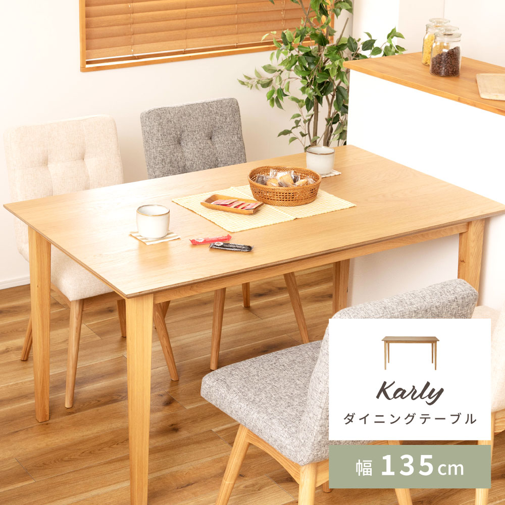こちらはダイニングテーブル(長方形:120×75cm)のみの販売ページです。 ▼ サイズ違いはこちら ▼ 幅75cm ▼ ぴったりのチェアはこちら! ▼ ▼ セット販売はこちら ▼ 天然木アッシュのダイニングテーブルもございます 伸長式のダイニングテーブルもございます 床の傷防止や汚れ防止に!▼ 透明ダイニングマットはいかがですか? ▼抗菌/防カビ/撥水クリアダイニングマット まだまだあります!>>ダイニングテーブル一覧はこちら<< 仕様サイズ 幅120×奥行75×高さ71cm 【スタッフひーちゃんのおすすめポイント!】 ・まっすぐ伸びた木目が美しいオーク材の突き板を使用したダイニングテーブル ・天板には汚れに強いウレタン塗装を使用 ・丸みを帯びた角と天板のエッジでやさしい雰囲気に ・脚のみ取り付けの簡単組み立て ・子供にも安心・安全のFフォースターランクの塗料を使用 重量 約19kg 耐荷重 約40kg 素材 天板:天然木化粧繊維板(オーク材)、ウレタン樹脂塗装 脚部:ラバーウッド(ラッカー塗装) カラー ブラウン・ナチュラル 梱包サイズ 15x80x125cm 生産国 ベトナム 備考 【組立品(約15分)】 ※配送は全て宅配便(1人)での玄関渡しとなります。大型商品や重量商品、エレベーターの無い2階以上にお住まいのお客様は、玄関口までの搬入をお手伝いをお願いしております事をご了承ください。※加熱した鍋、湯沸かし等は直接置かないでください。 ※2020年6月5日より天板の角の形状が変更になりました。送料【送料無料(北海道・沖縄県・離島は送料別途)】※北海道・沖縄県・離島の場合はお問い合わせください。※別途送料が必要な場合には、送料をご了承いただいてからの発送となります。 ■お支払い方法・配送について詳しくはこちら