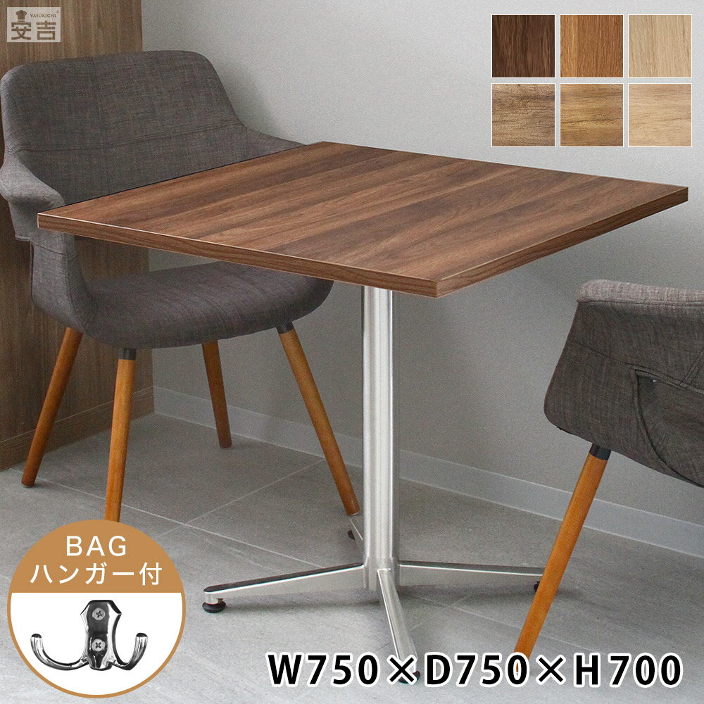 レストランテーブル 【サイズ】750mm×750mm×高さ700mm 【天板の厚み】25mm 【重量】角ベース脚:約24.4kg、角丸ベース脚:約22.05kg、丸ベース脚:約20.4kg、十字ベース脚:約14.60kg 【カラー】ダークウォルナット/ミディアムウォルナット/クリアナチュラルヴィンテージブラウン/ヴィンテージナチュラル/ヴィンテージホワイト 【天板】積層合板/表面・裏面メラミン樹脂化粧繊維板 【脚部】スチール(粉体塗装) バックハンガー付き 【仕様】組立式 ■注意事項 ・直射日光があたる場所は避けて設置してください。 ・ヒーター等、火気の近くには設置しないでください。 ・加熱した鍋や湯沸かし等を直接置かないでください。 ・テーブルに腰掛けたり、踏み台として使用したり天板に立ったりしないでください。 ・湿気の多い場所は避け、平面に設置してご使用ください。 ・床面にキズがつかないよう設置場所にはご注意ください。 ・テーブルに過度な荷重をかけないでください。 ・テーブルの上に物を乗せたまま移動しないでください。 ・移動させる場合には引きずらず、持ち上げた状態で移動させてください。 ・お手入れには薄めた中性洗剤を使用し、その後よく水拭き・乾拭きをしてください。 ・アルコールやベンジン、磨き粉等は使用しないでください。 ・取り付けネジ部は定期的に点検をし、必要であれば増し締めを行ってください。 ・キズや汚れがある場合がございます。予めご了承下さい。 ・配送トラックの都合上、ご注文数量によっては分納となる可能性がございます。 ・椅子はイメージの為付属しません。レストランテーブルのみの販売となります。 カフェやレストランなどの飲食店でご利用頂ける業務用ダイニングテーブル。安吉のレストランテーブルの天板には積層板を採用し確かな強度を実現しました。表面にはメラミン樹脂化粧繊維板で仕上げており傷がつきにくい構造になっています。関連商品