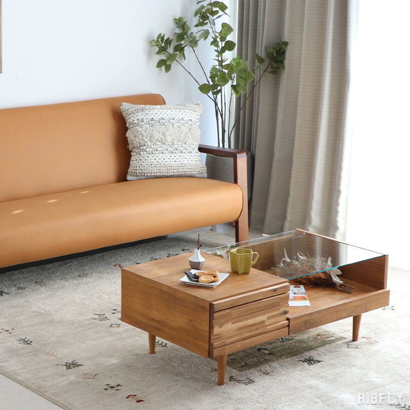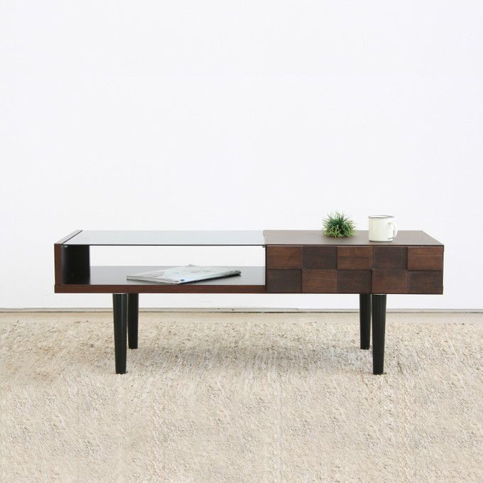 凹凸を出したアカシア無垢材が、立体感と奥行きを出してくれています。 ガラス越しに魅せる収納は、引き出し機能がついており便利に活用できます。 細身の脚にも拘っているおしゃれなアイテム。 日本製の安心安全F☆☆☆☆の商品です。 素材 天板:強化紙化粧板 本体:プリント化粧板 引出(塗装):アカシア集成無垢(ウレタン塗装) 右前板:強化紙化粧板 脚部(塗装):ラバーウッド無垢(ウレタン塗装) テーブル天板ガラス:5mm強化透明ガラス サイズ 幅1000×奥行540×高さ370 (mm) 引出し:幅305×奥行320×高さ145 (mm) スライド棚:幅560×奥行495×高さ140 (mm) 耐荷重 天板:10 kg 棚板:5 kg 引出:5 kg 製品重量 22kg 生産国 日本製 備考 完成品(脚部はお客様取り付け) 保証期間について 保証期間は、商品到着後1年間となっております。構造等の不具合に限り、1年間は保証の対象となります。 ※保証書は付属していない商品もございますので、不具合等が見つかった場合は当ショップまでお問い合わせください。 SERIES LINEUP チェア 伸長テーブル 140ローボード 180ローボード サイドテーブル リビングテーブル シェルフアカシア材の凹凸感に注目! 飾れるリゾートなお部屋にぴったりなシリーズ。 前板の凹凸感が印象的!アカシア木目の存在感と凹凸デザインの相性はGOOD! 建築でも人気の高い形状なのでサラッと今時なお部屋に♪