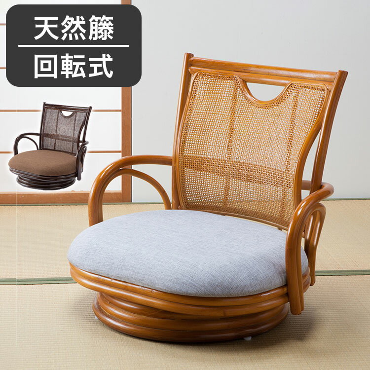 座面内寸幅をゆったりと取った籐回転座椅子。男性があぐらを掛けるくらいのサイズでくつろげます。背面は身体の背中に添うように設計されており、着座時のサポート感を追求しています。座ったままでも体の向きを変えやすい回転座面仕様にしています。張地は通年使用に適したジャカード調を採用しています。和室にはもちろん、洋室にも違和感なく溶け込みます。組立不要完成品■商品サイズ(約)幅65×奥行57×高さ62cm、座面高:(約)21cm■素材フレーム:籐(ウレタン塗装)、張地:ポリエステル、中材:ウレタン■重量重さ:(約)6kg■生産国インドネシア■特徴機能:回転式背:ランバーサポート仕様■備考※ロッキング機能はございませんのでご注意ください。※手作業で生産される籐製品は表記寸法と若干の誤差がある場合がございます。【代引きについて】こちらの商品は、代引きでの出荷は受け付けておりません。【送料について】北海道、沖縄、離島は送料を頂きます。籐家具 ラタン回転チェア回転高座椅子サイドテーブル
