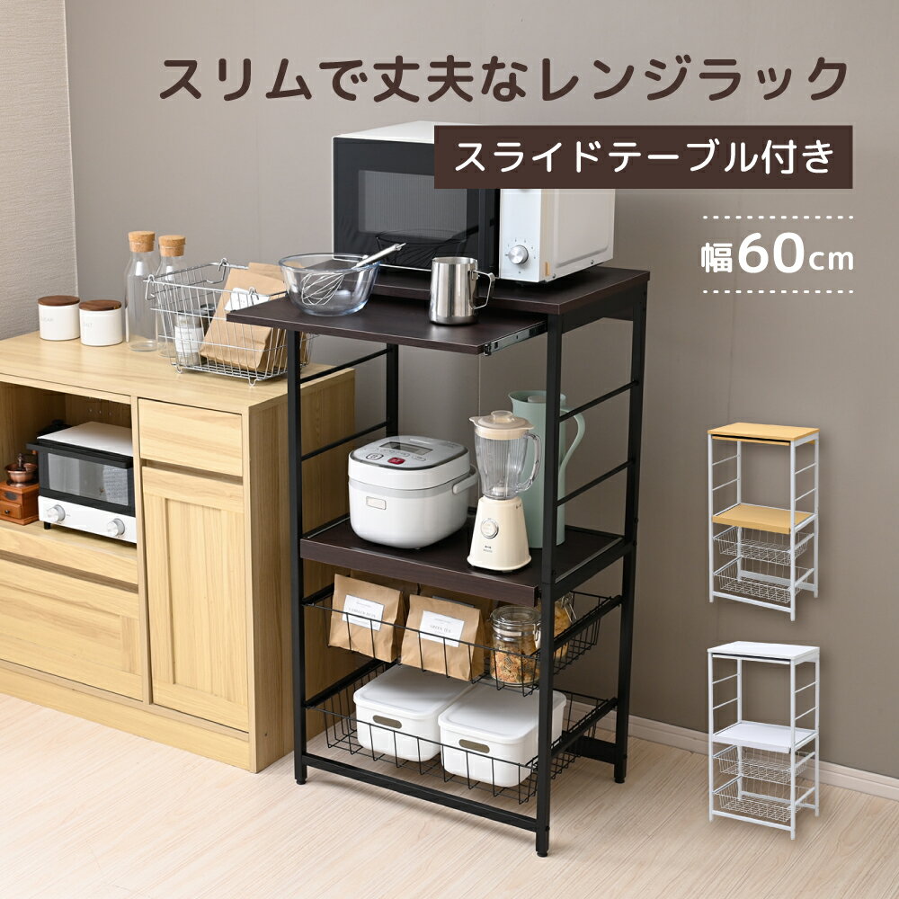 〔サイズ〕本体:幅57.5×奥行51×高さ82.5cm 〔材質〕天板、中板:プリント紙化粧繊維板 地板、フレーム:スチール、塗装 〔仕様〕色:ホワイト 耐荷重:天板約25kg/スライド棚先端部約5kg、中央部10kg/下棚棚10kg キャスター付き コンセント付き(1500Wまで) 〈お客様組立品〉 【キーワード】 大型レンジ対応 キッチンラック レンジ台 レンジラック おしゃれ 安い ホワイト 白 キャスター付き 幅60 奥行45 ロータイプ 3段 オーブンレンジ キッチンワゴン 炊飯器 収納 スリム 引き出し ヘルシオ スチームオーブンレンジ 激安 おすすめ 丈夫 アイアン スチール 人気ランキングシリーズ 【棚無しタイプ】レンジラック 【棚有りタイプ】レンジラック