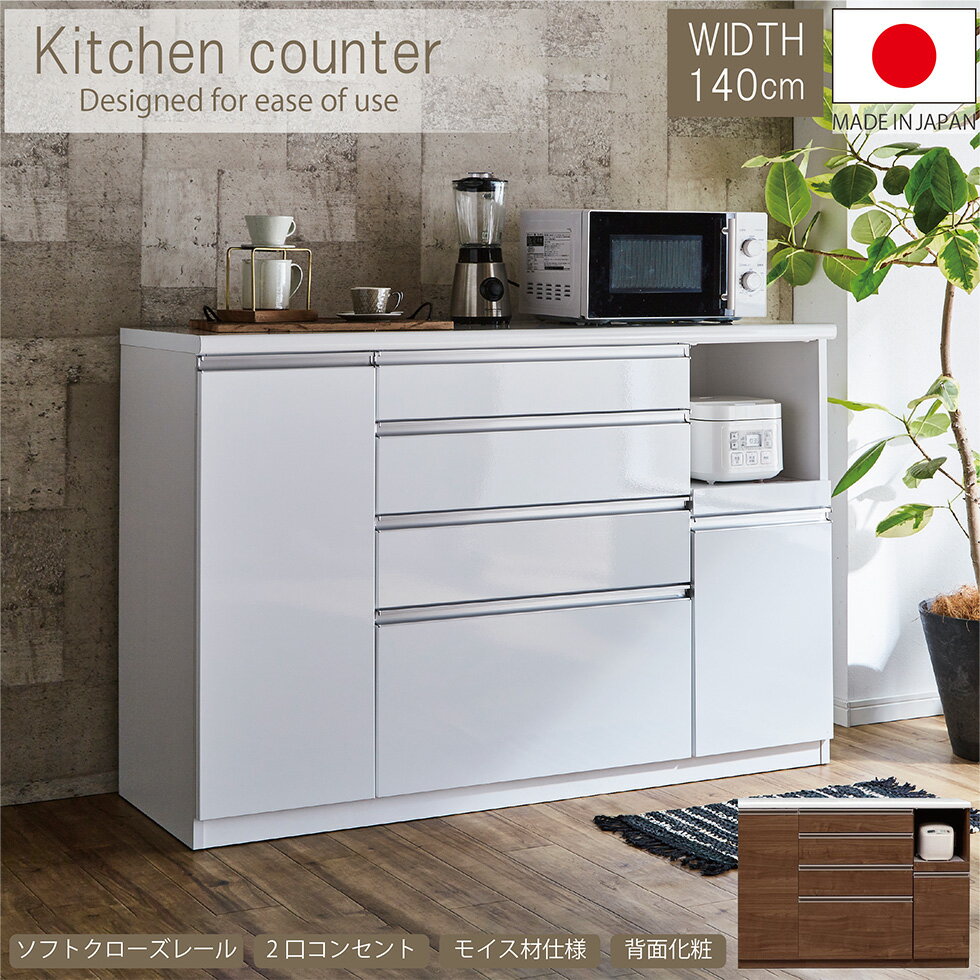 商品説明 使いやすさを考えた幅140cm高さ100cmのカウンターです。 一般的なカウンターの高さ85cmよりも高い100cmに設定しており、使いやすく作業台としてもご使用いただけます。 メラミンの天板は耐熱性・耐水性・耐汚性に優れており、日々のメンテナンスも楽に行えます。 スライド棚を除く全段の引き出しはソフトクローズレールを使用しています。 引き出しの奥まで開くことができ、閉まる手前で衝撃をやわらげゆっくり閉まります。 開き扉はソフトクローズ蝶番を使用しており、閉まる際に衝撃をやわらげゆっくり閉まります。 オープン部分には蒸気や湿気を吸収する素材「モイス」を採用しています。 背面は化粧仕上げになっているので間仕切りとしても使用できます。 引出しの内部は汚れてもさっと拭き取れるラッピング加工を施しておりますのでとっても衛生的です。 底板・中仕切り板も化粧板を施していて収納しても木の粉が付かないので衛生的で安心してご使用いただけます。 本体は完成品なので組立商品に比べて耐久性も良くとっても頑丈なつくりなのでながくご使用いただけます。 色は、清潔感のあるホワイト色と落ち着いたブラウン色の2色からお選びいただけます。 サイズ <商品サイズ> (約)幅139.5×奥行48×高さ100cm カラー ウォールナット ホワイト 材質 MDF含浸紙(メープル柄) リアルウッドクリーンイーゴスシート 天板:メラミン 特徴 日本製 ソフトクローズレール ソフトクローズ蝶番 背面化粧仕上げ モイス材(オープン上部) 1500Wコンセント 完成品 送料 九州〜関東まで【送料無料】 開梱・組み立て・設置サービス付き (梱包材の持ち帰りも全ておこないます。) ※配送地域によっては開梱設置便がご利用頂けない場合がございます。 ※東北・北海道・沖縄への配送は別途送料をいただいております。 東北:4,000円 北海道・沖縄本島:6,000円 ※離島へのお届けが必要な場合は別途お見積りとなります。 ※商品1点の金額です。 納期 表示される配送予定日は目安となっております。 同じ都道府県でも配送エリアにより配達日数が異なりますので、表示している最短のお日にちにお届けできない場合もございます。 予めご了承ください。 ご注文商品が欠品の際はメールまたはお電話でご連絡いたします。 配送について ■配送日の前日(または当日の朝)までに配送センターより、おおよその配送時間帯をお電話またはショートメールにてご連絡致します。 配送日当日は必ずご在宅(ご待機)いただけますようお願いいたします。 ■大型商品の場合は事前に搬入経路を必ずご確認ください。 ※搬入できず返品される場合は往復の送料・商品代金の30%をお客様にご負担をいただきます。予めご了承ください。 大型商品は特に物流費が高騰しており、商品代金並みになる場合もございます。十分にご注意ください。 ■商品の吊り上げが必要な場合の費用はお客様ご負担となります。 商品保証 当店の商品には保証書が付属しておりません。商品保証はメーカー保証にて商品到着より1年間となります。 (一部商品を除く) ご理解の程、宜しくお願い申し上げます。 注意事項 ■商品の撮影には最大限注意を払っておりますが、閲覧時のモニター環境によりましては実際の商品と若干違うお色味に映ることもございます。 ■こちらの商品は大型家具の為、ご希望の日時に配送できない場合がございます。予めご了承下さい。■追加料金につきましてはご注文時には反映されず、営業日にご注文を確認後、金額修正させていただきます。 ■お届け予定日の2営業日前の配送日の変更、または当日ご不在の場合は再配送料として8,800円(税込)いただいております。必ず配送日のお知らせメールをご確認ください。 関連商品【マラソン期間10%OFFクーポン配布】【開梱設置付】キッチンカウンタ...【マラソン期間10%OFFクーポン配布】【開梱設置付】キッチンカウンタ...【マラソン期間10%OFFクーポン配布】【開梱設置付】キッチンカウンタ...88,600円89,800円80,800円【マラソン期間10%OFFクーポン配布】【開梱設置付】キッチンカウンタ...【マラソン期間10%OFFクーポン配布】【開梱設置付】キッチンカウンタ...【マラソン期間10%OFFクーポン配布】【開梱設置付】キッチンカウンタ...80,800円82,000円79,700円シリーズ商品はこちら