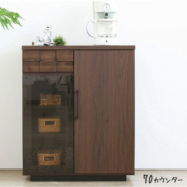 商品説明 サイズ ( cm ) 本体:幅70×奥行42×高さ85 仕様 [主材] ウォールナット無垢(PU塗装) [側面、内部] プリント化粧板 ◇フルオープンレール ◇クロスガラスを使用 ◇天板耐荷重:約30kg 送料 送料無料 ただし、北海道、沖縄、離島は追加料金がかかります。お気軽にお問合せ下さい。 主材にウォールナット無垢材使用のカウンター 高級家具の材質で知られるウォールナット材をふんだんに使用したカウンターです。 どこか懐かしさを感じさせるレトロ感のあるデザイン。 ガラスにはクロスガラス。 ツマミや取っ手にはクラシカルな雰囲気のスチール。 コンパクトながら収納力抜群。 天然木ウォールナット材特有の重厚感のある鮮やかな木目をお楽しみ下さい。