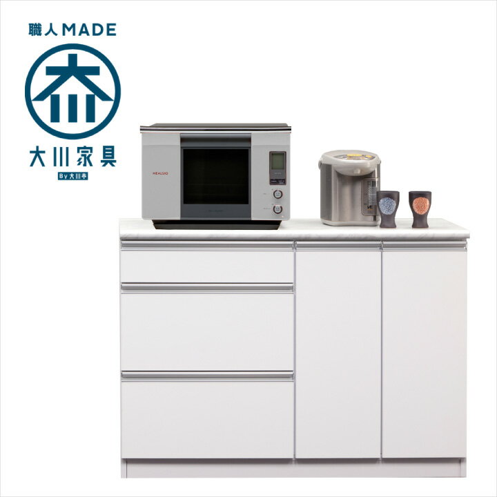 ■ 送料無料にて配達 ■ ■但し、北海道・東北・沖縄・離島を除きます。 北海道・東北・沖縄・離島の方は"■送料について(一部地域は別途送料有り)"プルダウンメニューから対象地域をお選びください。※対象地域でお選びいただけなかった場合でも、送料を加算させていただきます。ご了承ください。 ■運送会社の事情により離島・北海道・他、一部地域においては配達できない場合がございます。■対象地域の送料は別途ご請求とさせていただきます。送料をご承諾されましたら、注文確定メールにて合計金額をお知らせいたします。(注文確定メールが届いていない場合はご質問メールが届いていないか確認お願いします。) ■商品説明(Description of item) 安心の日本製 高級感のある大理石調カウンター天板のシンプルデザインキッチンカウンター。 背面化粧仕上げなので間仕切りにも使えます。 材質 MDF ハイグロス 天板メラミン サイズ 幅118.8×奥行44.6×高さ85cm カラー ホワイト 特徴 ・完成品 ・日本製(大川家具) ・引き出しフルオープンレール仕様 ・天板大理石調メラミンポストフォーム ・オープン部スライドカウンター付き ・裏面化粧仕上げ ・2口コンセント付き ■画像のカラーについて お持ちのパソコンによって商品の色が実際の商品と異なって見えてしまう場合がございます。 ■納期表記について 当店商品はメーカー取扱商品も販売中の為、稀に在庫切れの場合もございます。 ■商品配送について 配達はすべて玄関渡しとなります。大型商品やエレベーターの無い2F以上のお客様は玄関まで運ぶのをお手伝いをお願いしております。 ■大型商品のお届け日指定について 大型商品は商品出荷からお届けまでに約7〜10日間程お時間を要します。お届け日指定があるお客様は、お時間に余裕をもってご注文くださいますようお願いいたします。沖縄・離島・東北・北海道・郡部等は更にお時間を頂く場合がございます。 ■大型商品のお届け時間について 大型商品の配送は大型専門の運送会社を使用しますので、お届けは18時までのお受け取りに限ります。日付指定をされる際には、日中お受け取りできる日程をご指定ください。 ■お客様都合による出荷後のキャンセルや転送について 家に入らない、カラーや商品を間違えた等のお客様都合のキャンセルの場合は往復分の送料・各手数料・商品代3割をご負担頂きます。住所の間違いによる転送についても転送料をご負担頂きます。 ■商品保証について 不良や破損等が発生した場合お届け日より3ヶ月間保証いたします。保証対象は当店基準により判断させていただきますので、ご要望にお応えいたしかねる場合もございます。