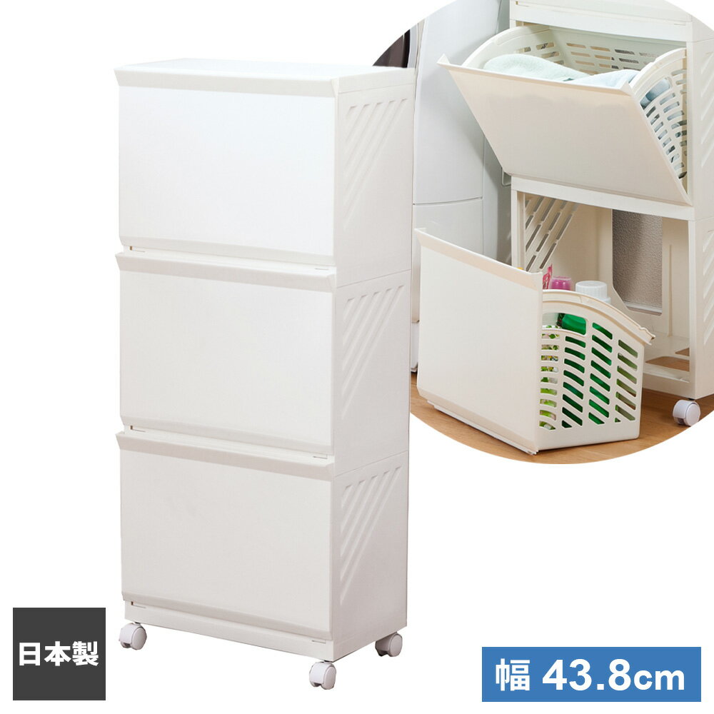 隠してスッキリ!収納した中身を見せない!ランドリー収納ボックス【幅43.8cm】。洗濯物をしっかり目かくし脱いだ服や洗濯物など、生活感が出やすいものは隠す!見た目もお部屋もスッキリ!3段あるので洗濯物も分けられます。取り外せるバスケット引き出しは取り出し可能。取っ手付きのバスケットとして使えます。両サイドにも持ち手付きなので持ち運びに便利です。出し入れしやすい手前に開く仕様の引き出しはストッパー付きで出し入れしやすく便利です。通気性抜群本体の側面はスリット入り、背面も通気性の良い構造。バスケットもメッシュタイプなので湿気がこもらず安心です。ストッカーとして深さがあるので洗剤の詰め替えやシャンプー類のストックを入れても。キャスター付きキャスター付きで移動もラクラク。お掃除しやすく便利です。ランドリー以外でも使えるキッチンやリビング、子供部屋などでも活用できます。日本製日本国内で製造管理された国産の商品です。サイズ(約)幅43.8×奥行28.7×高さ104.6cm重量(約)5.315kg材質本体・キャスター/ポリプロピレン キャスター芯/スチール耐熱温度120度製造国日本メーカー平和工業商品バリエーション
