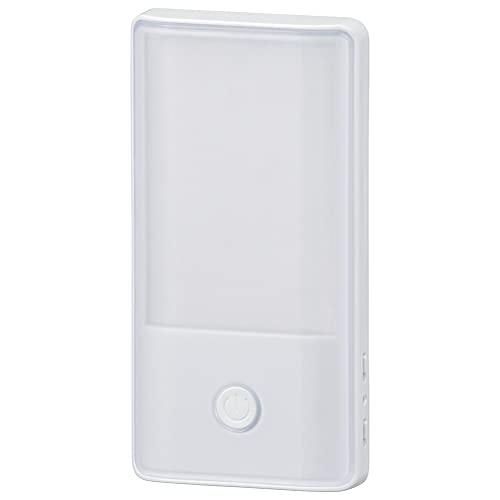 コンセントに挿せばセンサーライト、いざという時は手持ちライトとしても使える人感センサー付きLEDライト。<特長>●人感センサー付きLEDライトで、感知すると自動的にLEDが点灯し、足元を明るく照らします。●取り外した時には、自動的に上部のLEDが光りますので、緊急時にもすぐに対応できます。●表面のLED発光の面が平らで広い構造になっており、目にやさしい電球色の明るさです。●緊急時(災害など)は、ホルダーから外して、懐中電灯として利用できます。●停電時には自動でLEDが点灯し、非常灯としても使用できます。●懐中電灯、非常灯として使用する場合は、最大140ルーメンの高輝度ライトになるので、緊急時も安心です。●本製品は屋内用です。<仕様>■光源:昼白色■色温度:表面/3000K上部/25000K■本体サイズ:本体/W65×D16×H148mmホルダー/W70×D47×H64mm■重量:本体/約99gホルダー/約52g■光束:表面/35ルーメン上部/最大140ルーメン※上部の光束値は、停電時とヘッドライト点灯時では若干異なります。 ヘッドライトとして使用する方が若干明るく照らします。■調光:不可■LED数:7粒■消費電力:1.0W■電源:AC100V(50/60Hz)■連続使用時間:3時間■バッテリー容量:500mA■充電時間:約32〜50時間※お買い上げ時や長時間未使用の場合は、50時間程かかります。■センサー距離:2m感知距離/約2m以内感知角度/水平約100°■LED寿命:30000時間■使用温度範囲:-20℃〜40■センサー感知後のLED照度時間:点灯後、約20秒後に消灯■セット内容:壁コンセント差込プラグ付きソケット■保証期間:ご購入日より3ヶ月■取扱説明書:日本語取扱説明書あり<関連キーワード>4969887800447 USB-LED01N LEDセンサーライト 壁コンセント 充電式 人感センサー 懐中電灯 停電 自動点灯