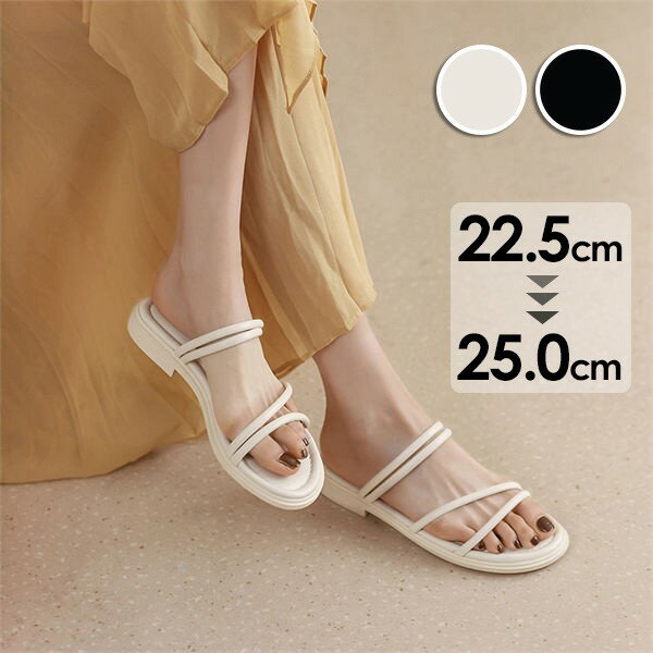 韓国 ミュールサンダル ビーチサンダル カジュアル フェミニン ガーリー 大人可愛い シューズ 軽量 美脚サマーサンダル 歩きやすいサンダル フラットサンダルサッと履け、フラットソールで安定感のある、履き心地が良い夏サンダル細めのストラップが女性らしい印象を与えるベーシックなデザインで、多様なスタイルにマッチし、スタイリッシュな足元を演出してくれる甲素材:合成皮革底素材:合成底カラー:ブラック/アイボリーサイズ:22.5cm(35)/23.0cm(36)/23.5cm(37)/24.0cm(38)/24.5cm(39)/25.0cm(40)(カッコ内は靴底表記となります)[22.5]長さ:約22.5cm 幅:約10.0cm ヒール:約1.5cm[23.0]長さ:約23.0cm 幅:約10.2cm ヒール:約1.5cm[23.5]長さ:約23.5cm 幅:約10.4cm ヒール:約1.5cm[24.0]長さ:約24.0cm 幅:約10.6cm ヒール:約1.5cm[24.5]長さ:約24.5cm 幅:約10.8cm ヒール:約1.5cm[25.0]長さ:約25.0cm 幅:約11.0cm ヒール:約1.5cm重さ(両足):約316g-339g生産国:中国※すべて平置きサイズです(採寸方法違いより、多少の誤差がございますので、ご了承ください)。※海外輸入品のため、商品の細部仕様は多少異なる場合がございます。予めご了承の上、ご注文お願い致します。返品・交換について購入後の交換は受け付けておりません。予めご了承ください。返品を希望される場合は購入履歴一覧の「ショップへの問い合わせ」よりお問い合わせください。=========================複数配送先指定について1件の注文に対して、異なる住所への配送は対応出来かねます。恐れ入りますが、異なる住所へ配送をご希望の場合、配送先毎に分けて注文いただきますようお願い申し上げます。【シューズ・靴WOMEN】ブラック アイボリー 22.5cm(35) 23.0cm(36) 23.5cm(37) 24.0cm(38) 24.5cm(39) 25.0cm(40) 甲素材:合成皮革底素材:合成底