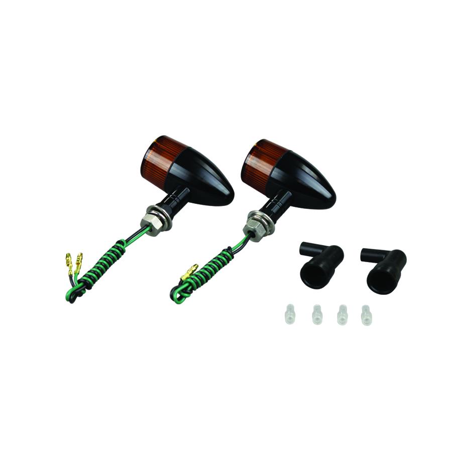 レンズ直径12mmの小型LEDウインカーで車種を選ばず装着可能 フロント、リアで車検対応 / ECE認証試験クリア 防水(IPX7相当) 取り付け部:M8×24mm / 直流12Vの二輪車専用品(12V 4W)