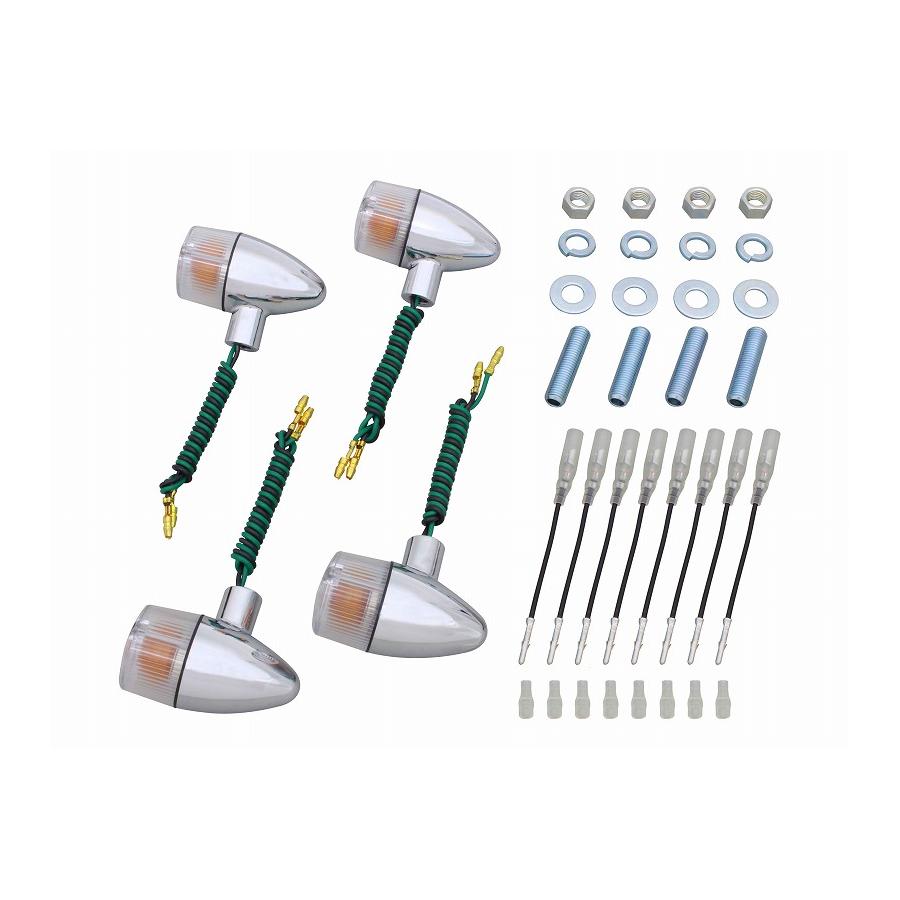 メーカー名:ポッシュフェイスメーカー品番:1950991台分、4個(前後)がセットになっています。別売のボルトオンフィッティングブラケット、変換カプラー、延長ステー等を併用する事で、幅広い車種へ装着が可能(取付けネジ径10mm専用)になります。フロントシングル球12V21W/リア12V21W。販売備考:1台分、4個(前後)がセットになっています。◆クラシカルウインカーシリーズ 砲弾タイプのセミユニバーサルセットです◆1台分、4個(前後)がセットになっています◆別売のボルトオンフィッティングブラケット、変換カプラー、延長ステー等を併用する事で、幅広い車種へ装着が可能になります◆フロントシングル球タイプ12V-21w、ダブル球タイプ12V-21w/8w、リア12V-21w※このウインカーセットは車種専用ではない為、取付けできない車種もあります。(取付けネジ径10mm専用)◆製品仕様:シングル球◆カラー(ボディ/レンズ):メッキ/クリア
