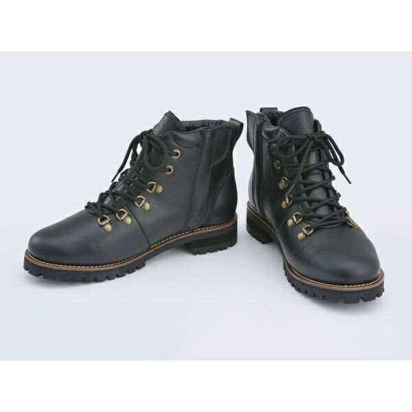 ●こう見えてもバイク用!木型からこだわった普段使いのできるライディングブーツ。 ミドル丈のエンジニアタイプ●外皮の内側にシフトパッドを、くるぶしにはクッションパッドを装備。●ファスナーカバー:愛車を傷から守ります。●脱ぎ履きしやすいサイドジップタイプ:セミオートマチックスライダー採用でYKK製ファスナーが ぶらつきません。●ソールのステップ部に滑り止め加工を: バイク(ステップ)との接点であるソールの土踏まず部には滑り止めを付けることで より安定したライディングが可能。●革なのに痛くなりにくい:裏地付きで、やわらかい履き心地■品番:96979■カラー:ブラック■サイズ:25.0■素材:[アッパー部分]牛革、[内装]ポリエステル、[ソール部分]合成ラバー