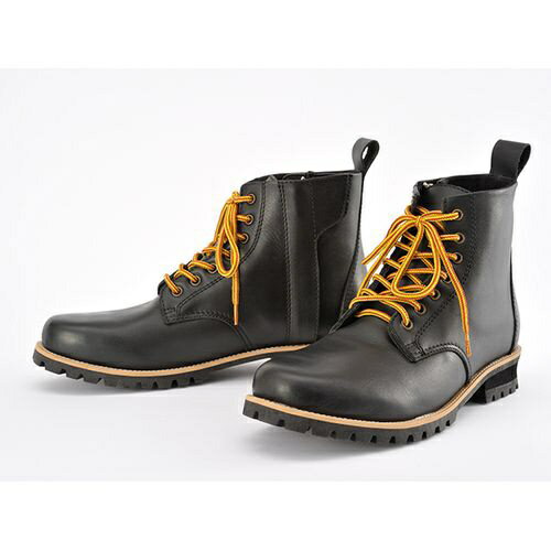 ●こう見えてもバイク用!木型からこだわった普段使いのできるライディングブーツ。 オーソドックスなレースアップタイプ。●外皮の内側にシフトパッドを、くるぶしにはクッションパッドを装備。●ファスナーカバー:愛車を傷から守ります。●脱ぎ履きしやすいサイドジップタイプ:セミオートマチックスライダー採用でYKK製ファスナーが ぶらつきません。●ソールのステップ部に滑り止め加工を: バイク(ステップ)との接点であるソールの土踏まず部には滑り止めを付けることで より安定したライディングが可能。●革なのに痛くなりにくい:裏地付きで、やわらかい履き心地■品番:96964■カラー:ブラック■サイズ:25.5■素材:[アッパー部分]牛革、[内装]ポリエステル、[ソール部分]合成ラバー