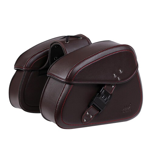 MOTOSTAGE バイク サイドバッグ ダイヤルロック付き 容量約6L×2 レザー 撥水 防水 鍵 ロック ツーリング (Casual, Brown, Medium)