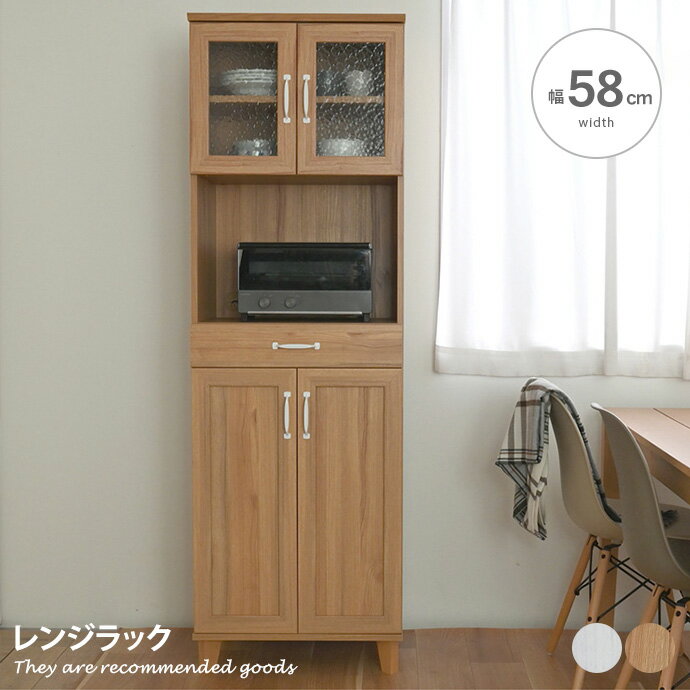 商品説明スペースを無駄にしない、ゴミ箱上レンジ台限られたスペースを無駄なく使えるゴミ箱収納付きレンジ台。ゴミ箱上のデッドスペースを収納場所に変え、すっきりと片付いたキッチンスペースを実現します。また収納には可動棚やスライド収納を採用し、使いやすい設計に。スリムデザインでお部屋に圧迫感を与えず、すっきりと置いていただけます。ゴミ箱上のデッドスペースを有効活用ゴミ箱上部に発生するデッドスペースを、収納スペースに変える便利なレンジ台。豊富な収納力で空間を無駄にすることなく、キッチン周りを整えます。収納だけでなく、引き出して使える作業スペースも搭載。キッチン用品を片付けながら、家事もスムーズに行えるようこだわりました。フタ付きダストボックスもらくらく収納フタ付きのダストボックスの開閉もスムーズに行えるゆとりのある高さ設計。フタを開けた時の高さが74.4cm以下のゴミ箱は、ゴミ袋の入れ替えも快適に行っていただけます。家電や食器を1台にまとめて効率的なキッチンに4つの収納と、引き出して使える作業用トレーがキッチン周りを快適にします。家電や食品、食器、細かいカトラリー類まで、キッチン周りの必需品をまとめて収納可能。必要なものを一か所にまとめられるため、日々の料理時間を効率よく快適にします。可動棚付きの扉収納ですっきり片付けられる上部は食器や小物を収納できる扉収納。中の棚板は可動棚になっており、高さは5段階で調節可能です。物の高さに合わせて調節でき、無駄なスペースを取ることなく収納していただけます。また扉収納までの高さは約137cmと、女性も物の出し入れがしやすい高さに設計し使いやすさを追求しました。手に取りやすく、使いやすいスパイスラックオープン収納上部には、調味料やカトラリー収納に便利な棚をご用意しました。目に見える位置に置けるため視認しやすく、必要な時にサッと取り出せるため便利です。キッチン周りを整理しつつ、調理時間や食事の準備を快適にします。フタ付き家電も使いやすい便利なスライドトレー扉収納下は、スライド棚を採用したオープン収納スペース。しっかり引き出せるため、炊飯器などのフタ付き家電の使用を快適に。上部から豆を入れるコーヒーメーカーなども使いやすい設計です。蒸気を外に逃がす通気孔と2口コンセント付きスライドトレーの奥には、家電の使用に便利な2口コンセントを設置。コンセントの配線は背面に逃がしており、コードが見えないスッキリした仕様です。また背面の通気孔により、炊飯器やケトルなどの家電から出る蒸気を外に逃がせます。カトラリーやキッチンツールの収納に便利な引き出し引き出し収納には細々したキッチン用品の収納が可能。たっぷり収納できるため、カトラリーだけでなく、キッチンツール・ラップ・ビニール袋などをまとめて収納いただけます。また軽く押すだけで開くプッシュオープン式のため、簡単に開け閉めが可能です。下段スライドトレーはちょっとした作業にぴったり引き出しの下にもスライドトレーを採用しました。サッと引き出せば手元にスペースができ、お料理などの一時置きとして活躍します。また収納としてもお使いいただけるため、ゴミ袋やふきんなどのストック場所としても便利です。空間に馴染みやすいシンプルデザイン木のぬくもりを感じるナチュラルな木目と、上品で洗練された印象のホワイトをご用意しました。空間に馴染みやすいデザインで、様々なインテリアに合わせていただけます。サイズ幅58cm×奥行43cm×高さ172cm材質パーティクルボード(メラミン貼り)脚部組立区分組立式お届け1〜4営業日以内の発送予定となります。(※予約販売を除く)8-14時・12-18時よりお届け時間のご指定が可能です。 備考【梱包サイズ1】80.5cm×48cm×17.5cm【梱包サイズ2】100cm×60.5cm×11.5cm【梱包重量1】約22kg【梱包重量2】約22.5kg【商品重量】約40kg【耐荷重】扉収納可動棚:約8kg、扉収納底板:約8kg、スパイスラック:約5kg、上段スライドトレー:約10kg、引き出し収納:約8kg、下段スライドトレー:約5kg※ゴミ箱は付属していません。※組み立て時間:2人以上で約180分【ORG】※プラスドライバーをご用意ください。