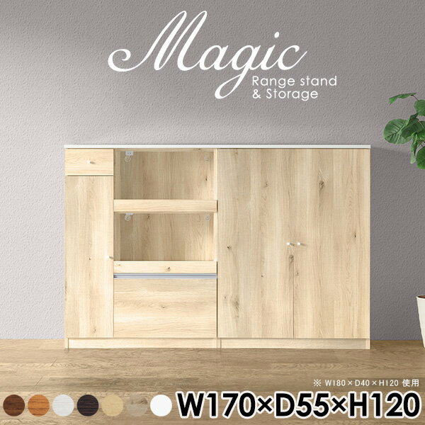 magic レンジ台×収納庫 W170×D55×H120 木目サイズサイズ:約幅1700 奥行き550 高さ1200 mm材質[天板・スライド棚]メラミン樹脂化粧合板[前板]ブラウン・ダークブラウン・チーク/デルナチュレ化粧合板ホワイト/ポリエステル化粧合板ナチュラル・ホワイトウッド・オーク/強化紙[側板・内部]プリント化粧合板カラーブラウン/ダークブラウン/ホワイト/北欧チーク/ナチュラル/ホワイトウッド/オークからお選び下さい。※モニターなどの閲覧環境によって、実際の色と異なって見える場合がございます。仕様日本製天板・各ユニット分割式でお客様連結作業あり連結金具付属耐荷重:天板50kg、スライド棚15kg、棚板5kg可動棚板:キャビネット用4枚、レンジ台左側収納用3枚棚板の厚み:20 mm背面化粧仕上げ(一部タッカー留め)コンセント1口付き(合計1500Wまで使用可能)2箇所ブランド 送料送料無料※北海道・沖縄・離島は送料別途お見積もり。納期ご注文状況により納期に変動がございます。最新の納期情報はカラー選択時にご確認ください。※オーダー商品につき、ご注文のキャンセル・変更につきましてはお届け前でありましても生産手配が済んでいるためキャンセル料(商品代金の50%)を頂戴いたします。※商品到着までの日数は、地域により異なりますご購入時にお届け日の指定がない場合、最短日での出荷手配を行いメールにてご連絡させていただきます。配送・開梱設置について※北海道・沖縄・離島は送料別途お見積もりいたしましてご連絡いたします。【ご注意ください】離島・郡部など一部配送不可地域がございます。配送不可地域の場合は、通常の配送便での玄関渡しとなります。運送業者の便の都合上、地域によってはご希望の日時指定がお受けできない場合がございます。建物の形態(エレベーターの無い3階以上など)によっては別途追加料金を頂戴する場合がございます。吊り上げ作業などが必要な場合につきましても追加料金はお客様ご負担です。サイズの確認不十分などの理由による返品・返金はお受けできません。※ご注文前に商品のサイズと、搬入経路の幅・高さ・戸口サイズなど充分にご確認願います。→ 詳しくはこちら備考【スライド蝶番を使用している扉の調整方法】商品到着時、また長期使用で生じる扉のズレや歪みは、蝶番の調節ネジで扉部分を前後・左右へ移動して調節をお願い致します。※製造上の都合や商品の改良のため、予告なく仕様変更する場合がございますので予めご了承ください。当店オリジナル家具を全部見る管理番号0000ac005356/0000ac005357/0000ac005358/0000ac005359/0000ac005360/0000ac005361/0000ac005362/メーカー希望小売価格はメーカーカタログに基づいて掲載していますこのページは magic レンジ台×収納庫 幅170×奥行55×高さ120cm 木目 のページです。レンジ台には家電製品を置いてもスムーズに出し入れできるスライド棚がついており、1口コンセント付きです。(合計1500Wまで使用可能)引き出しはたっぷり入る深めのタイプで、鍋やフライパンのように嵩張るものもまとめて片づけられます。収納庫は可動棚で仕舞うアイテムのサイズに合わせた収納ができる扉収納になっています。ツヤのある、高級感を感じさせるメラミン樹脂化粧合板を使用した天板。擦り傷や熱に強く、汚れてもサッと拭き取りやすいのでキッチンの作業スペースやダイニングでの利用におすすめ。『magic(マジック)』はレンジ台と様々な組み合わせを楽しめるシリーズです。サイズ展開も豊富なので、複数を並べることで壁面いっぱいに収納スペースを作ったり、作業台を中心にして広々としたワークスペースにすることも可能です。