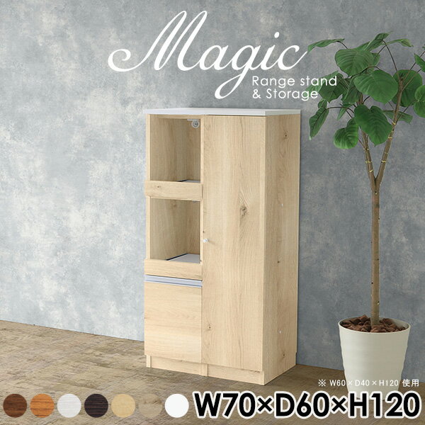magic レンジ台×収納庫 W70×D60×H120 木目サイズサイズ:約幅700 奥行き600 高さ1200 mm材質[天板・スライド棚]メラミン樹脂化粧合板[前板]ブラウン・ダークブラウン・チーク/デルナチュレ化粧合板ホワイト/ポリエステル化粧合板ナチュラル・ホワイトウッド・オーク/強化紙[側板・内部]プリント化粧合板カラーブラウン/ダークブラウン/ホワイト/北欧チーク/ナチュラル/ホワイトウッド/オークからお選び下さい。※モニターなどの閲覧環境によって、実際の色と異なって見える場合がございます。仕様日本製天板・各ユニット分割式でお客様連結作業あり連結金具付属耐荷重:天板50kg、スライド棚15kg、棚板5kg可動棚板:4枚棚板の厚み:20 mm背面化粧仕上げ(一部タッカー留め)コンセント1口付き(合計1500Wまで使用可能)2箇所ブランド 送料送料無料※北海道・沖縄・離島は送料別途お見積もり。納期ご注文状況により納期に変動がございます。最新の納期情報はカラー選択時にご確認ください。※オーダー商品につき、ご注文のキャンセル・変更につきましてはお届け前でありましても生産手配が済んでいるためキャンセル料(商品代金の50%)を頂戴いたします。※商品到着までの日数は、地域により異なりますご購入時にお届け日の指定がない場合、最短日での出荷手配を行いメールにてご連絡させていただきます。配送・開梱設置について※北海道・沖縄・離島は送料別途お見積もりいたしましてご連絡いたします。【ご注意ください】離島・郡部など一部配送不可地域がございます。配送不可地域の場合は、通常の配送便での玄関渡しとなります。運送業者の便の都合上、地域によってはご希望の日時指定がお受けできない場合がございます。建物の形態(エレベーターの無い3階以上など)によっては別途追加料金を頂戴する場合がございます。吊り上げ作業などが必要な場合につきましても追加料金はお客様ご負担です。サイズの確認不十分などの理由による返品・返金はお受けできません。※ご注文前に商品のサイズと、搬入経路の幅・高さ・戸口サイズなど充分にご確認願います。→ 詳しくはこちら備考【スライド蝶番を使用している扉の調整方法】商品到着時、また長期使用で生じる扉のズレや歪みは、蝶番の調節ネジで扉部分を前後・左右へ移動して調節をお願い致します。※製造上の都合や商品の改良のため、予告なく仕様変更する場合がございますので予めご了承ください。当店オリジナル家具を全部見る管理番号0000ac005377/0000ac005378/0000ac005379/0000ac005380/0000ac005381/0000ac005382/0000ac005383/メーカー希望小売価格はメーカーカタログに基づいて掲載していますこのページは magic レンジ台×収納庫 幅70×奥行60×高さ120cm 木目 のページです。レンジ台には家電製品を置いてもスムーズに出し入れできるスライド棚がついており、1口コンセント付きです。(合計1500Wまで使用可能)引き出しはたっぷり入る深めのタイプで、鍋やフライパンのように嵩張るものもまとめて片づけられます。収納庫は可動棚で仕舞うアイテムのサイズに合わせた収納ができる扉収納になっています。ツヤのある、高級感を感じさせるメラミン樹脂化粧合板を使用した天板。擦り傷や熱に強く、汚れてもサッと拭き取りやすいのでキッチンの作業スペースやダイニングでの利用におすすめ。『magic(マジック)』はレンジ台と様々な組み合わせを楽しめるシリーズです。サイズ展開も豊富なので、複数を並べることで壁面いっぱいに収納スペースを作ったり、作業台を中心にして広々としたワークスペースにすることも可能です。
