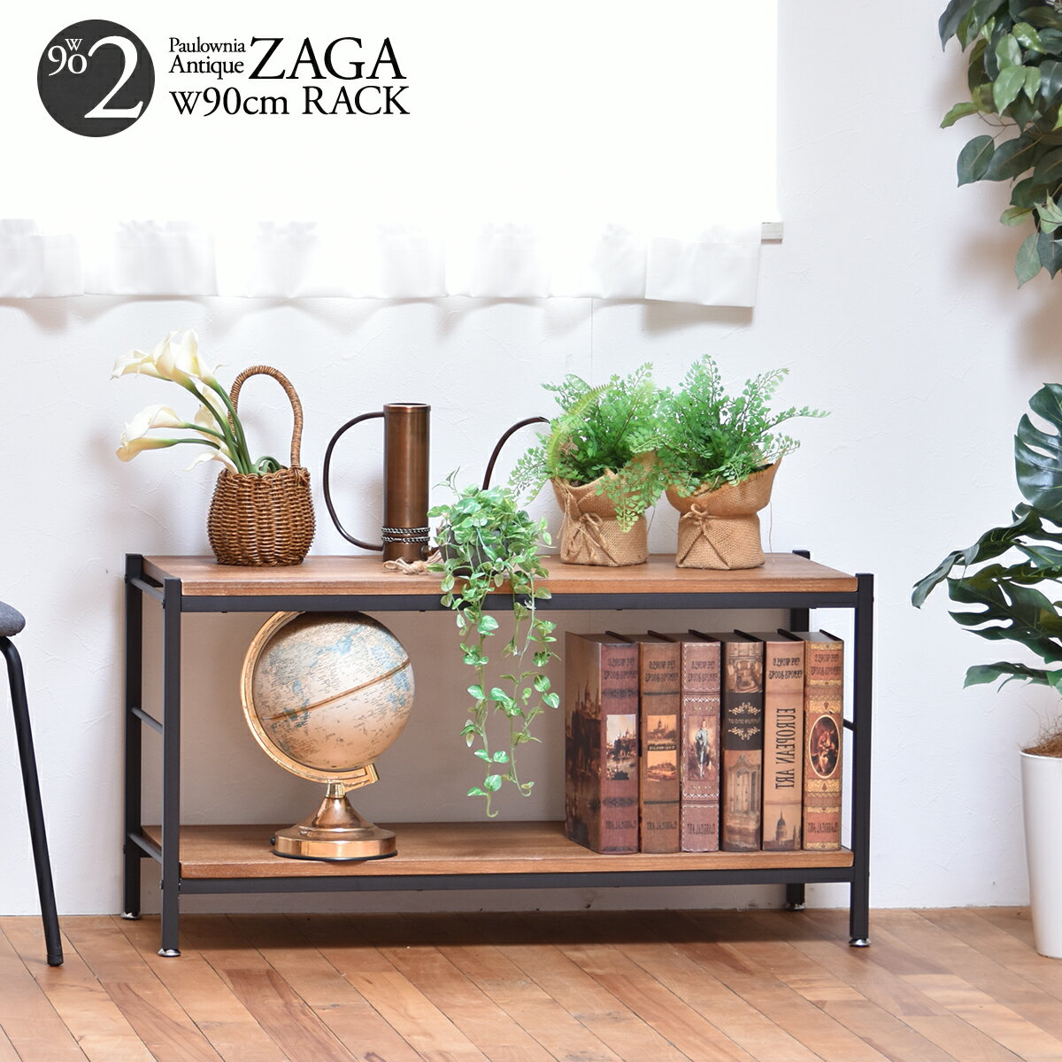 商品について: ZAGAシリーズは、無垢の桐材に凹凸のある表面に仕上げる事で、アンティーク調に仕上がっております。またアンティーク調に加工された天然の桐材と、スチールパイプの組み合わせが、絶妙なバランスと、好評頂いております。 商品サイズ:W900×D350×H470mm 素 材:【棚板】桐の天然木(ラッカー塗装) 【脚】スチールパイプ(粉体塗装) 重 量:7 kg 耐 荷 重:棚板:約15kg(1枚)=全体約30kg 形 状:組立 (約30分 / 1人) ※商品写真の色味は、ご使用の端末の設定等により実際のものと異なってしまう場合があります。予めご了承の程、お願い申し上げます。■送料 送料無料 北海道・沖縄・離島を含む(一部配送不可地域)のご注文は配達不可のためキャンセルさせて頂きます。