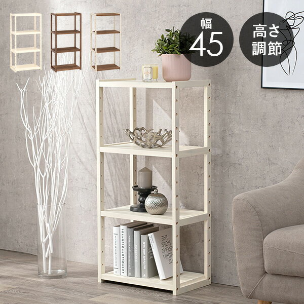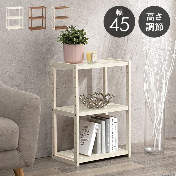 お買い物ガイド 天然木(パイン材)を贅沢に使用したコンパクトなオープンラック。 棚板は6cmピッチで高さ調節できるので、収納したいものに合わせられます。 シンプルなデザインと味わい深い木目の風合いは、色々なインテリアに馴染みやすい。 コンパクトサイズなので場所を取らず、一人暮らしのお部屋やワンルーム、子供部屋やリビングなど色々な場所に設置できます。 整理や収納用としての使用はもちろん、お気に入りの小物を飾るディスプレイ棚としても使えます。 幅は75cmと45cmの2種類、高さは65cmと95cmの全4種類あるので、シリーズで組み合わせてのご使用もおすすめ。 【商品サイズ(約)】 幅45×奥行28×高さ65cm 【商品重量(約)】2.5kg 【梱包サイズ(約)】 幅84×奥行31.5×高さ10.5cm 【主要素材】 パイン材(表面加工/ラッカー塗装) 【生産国】 中国 【備考】 ・お客様組立て品(プラスドライバーをご準備ください) ・天然木の特性上、商品表面(天板等)に木目(小さい溝)がでますが、これはキズ等ではなく天然木の木目によるものです メーカー希望小売価格はメーカーカタログに基づいて掲載しています商品スペック 商品サイズ(約) 幅45×奥行28×高さ65cm 梱包サイズ(約) 幅84×奥行31.5×高さ10.5cm 重量(約) 2.5kg 材質 パイン材(表面加工/ラッカー塗装) 生産国 中国 備考 ・お客様組立て品(プラスドライバーをご準備ください) ・天然木の特性上、商品表面(天板等)に木目(小さい溝)がでますが、これはキズ等ではなく天然木の木目によるものです サイズ一覧