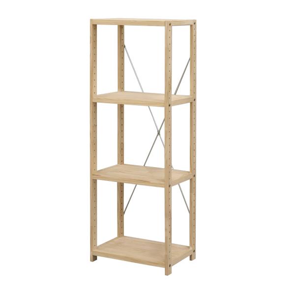 メーカー エイ・アイ・エス 商品カテゴリ 収納家具>オープンシェルフ・ラック 発送目安 1日〜2日以内に発送予定(土日祝除) お支払方法 銀行振込・クレジットカード 送料 送料無料 特記事項 その他 ●サイズ 幅62×奥行30×高さ121.4cm●材質 フレーム・棚板/天然木(無塗装)、クロスバー/スチール●商品重量 6.22kg●耐荷重 棚板10kg/枚、全体40kg●その他スペック 天板サイズ(約)/幅59×奥行30×厚み2.6cm、棚板調整用穴:37個、穴ピッチ:32mm、穴の直径7.7mm●商品コピー 天然木を使用したシンプルな4段収納ラック ◆ ■商品説明 ●サイズは選べる6サイズ(幅3種類、高さ3種類)。収納する物やお部屋に合わせてお選びいただけます。●本棚として、ディスプレイラックとして、インナーボックスを入れるなど、色々な収納に。●棚は32mmピッチで高さ調整が可能。背面にグラつきを抑えるクロスバー付き。●脚裏には傷防止のフェルト付き。●オプション棚を使って、ラック本体同士を連結し、オリジナルのラックを作ることができます。●無塗装の天然木を使用しているので、経年の色の変化を楽しめます。●お好きな色にペイントしてもOK。●収納力アップに、ディスプレイラックとしてなど、楽しみ方は色々。可能性が広がるラックです。