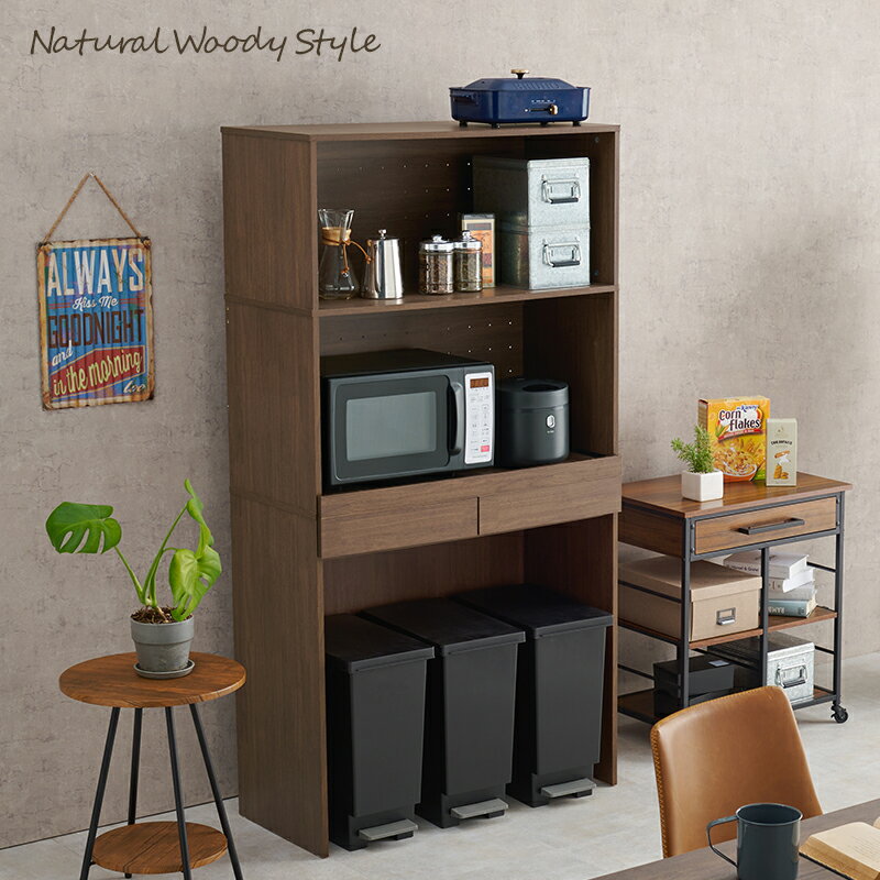 ご購入前に必ずにて商品の詳細をご確認下さい。また、商品に関して何かご不明な点は下記までお問い合せ下さい。萩原株式会社 スリーアイ本部086-523-4560※メーカーのサポート体制は予告無く変更・終了する場合がございます。※当商品は代金引換をご利用頂く事が出来ません。買い物かごのお支払方法にて代金引換をお選び頂かない様お願い申し上げます。 出し入れしやすいオープンタイプの多機能収納でキッチンスペースを有効活用可能。引出しやスライド棚付きでキッチン家電も使いやすい。■キッチンスペースを有効活用 ゴミ箱の上などキッチンにできがちな無駄をなくして、キッチンスペースをさらに快適な空間にしてくれます。 ■スライド棚 背面にコード穴がついているので家電も置けるスライド棚。 蒸気の出る炊飯器なども引き出して使えます。 スライド棚の耐荷重:約10kg ■キレイに配線できるコード穴と蒸気を逃せる通気口つき。 炊飯器などのキッチン家電を快適にお使い頂けます。 ■リアルな木目調 自然の温もりが感じられる木目調。 まるで本物の天然木のようなリアルな質感です。 本物の古材のような風合いを出すため、のこぎりの刃跡までリアルに再現しました。 ◇サイズ:(約)幅88×奥行41.5×高さ172cm ◇素材:主材:プリント紙化粧パーティクルボード ◇組立式 ◇スライド棚付