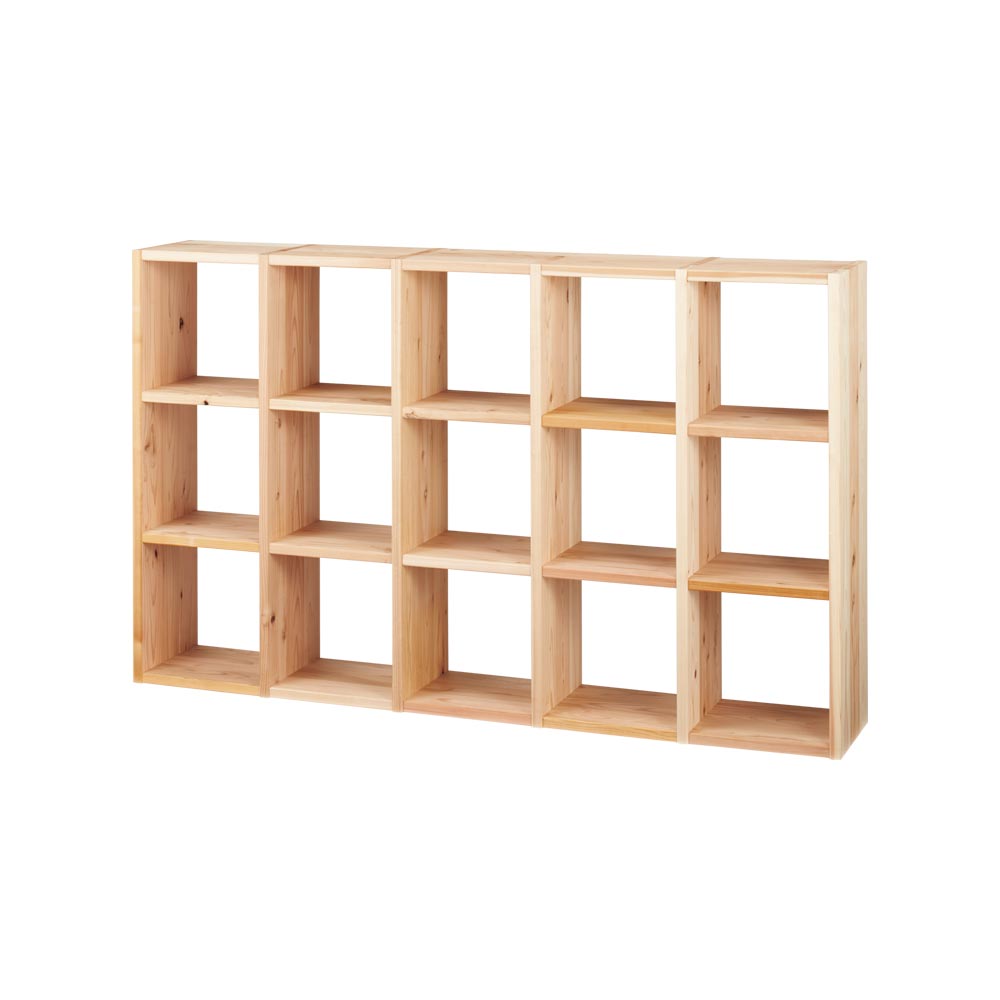 長く使うほどに味わいが増すサステナブルなオープンシェルフ兵庫県播磨エリアの豊富な森林資源を活かして、杉天然木を使用した心温まるラックを職人と共に開発しました。杉の爽やかな香りがお部屋に広がります。本棚や飾り棚、クローゼット収納、壁面収納など、さまざまな用途でお使いいただけます。収納部内寸は幅33.5cm奥行30.5cm高さ33.5cm。LPレコード、A4ファイル、雑誌類、重たい書籍もしっかり収納できます。棚板耐荷重があるので、工夫次第で様々な用途に棚板1枚あたりの耐荷重は30kgなので、重たいアイテムも安心して収納可能です。更に幅が33.5cmと短いので棚板がたわみません。ブックシェルフや、ディスプレイ棚、おしゃれなショップのクローゼットのように洋服を平置きするなど、多用途に活用できます。工夫次第で、見せる収納の可能性が広がります。棚の横列と縦の段は全部で12通りのサイズからお選びいただけます。梁や窓の高さに合わせて複数組み合わせても、単体で使ってもOK。シンプルなデザインがお部屋のインテリアに自然と馴染み、便利に使えるアイテムです。造り付けの家具より安くリーズナブルに壁面収納をつくりことができます。さらに組立商品なので模様替えや引っ越しが多くても安心です。建築材にも使われる丈夫な国産杉杉は古くから建築材料として使用されてきました。このオープンシェルフは、国産杉の原木を兵庫県宍粟市の兵庫木材センターで製材。近隣の家具メーカーでその材料を加工し家具を製造しています。材料供給から製造まで地元企業で連携をとることで、持続可能な森林育成を推進しています。素材を知り尽くした家具職人が、受注を受けてから一つずつ丁寧に仕上げています。修正無垢材には安心・安全なF☆☆☆☆クラスの接着剤使用シックハウス症候群の原因となるホルムアルデヒトの含有量が最も少ないF☆☆☆☆クラスの接着剤を使用し、健康に配慮した安心・安全な作りになっています。合板は一切使用していない無垢の家具です。節のある表情も自然ならではの恵み木目や節が一枚ごとに異なる趣があるのも天然木の特長です。本来なら破棄されてしまう場合もある死節がある部分も有功活用しています。天然素材ならではの風合いをお楽しみください。また、杉天然木は日光に触れることでゆっくりと色味が濃くなり、年月と共に味わい深い風合いに変化。清々しい杉の香りで、まるで森林浴をしているかのような心地よさを楽しめます。ページ下部に画像の説明がございます。一部別売りの商品もございますので、説明文ご確認のうえご注文ください。>画像の説明はこちら<仕様・サイズ■サイズ:幅75.5cm奥行31.5cm高さ184cm、収納部有効内寸幅33.5cm奥行30.5cm高さ33.5cm■素材:国産杉天然木(無塗装)■棚板は固定式■壁付けに設置してご使用ください。■日本製※オーダー商品のため、キャンセル・変更・返品はご容赦ください。【組み立て時間約60分】【送料マーク:C】 梱包サイズが大きいため、お部屋まで搬入できない場合があります。ご注文の際は、必ず事前に梱包サイズと設置場所までの搬入導線(通路の幅・高さ等)をご確認ください。>詳細な説明はこちら<この商品の配送料は4000円(税込)です。※沖縄県へのお届けは上記に地域特別配送料5500円(税込)が追加されます。この商品は下記のサービスが選択できます。※組み立て・開梱サービスは日時指定ができません。お届け前に配送所より配達日時のご連絡をさせていただきます。※別途配送料金がかかります。有料組み立てサービス※開梱サービス付きについて有料開梱サービスについて 画像の説明横2列×縦5段(幅75.5cm高さ184cm)使用イメージコーディネート例棚板1枚あたり耐荷重30kg天然の節を活かしたナチュラル仕上げ。※節の状態によりパテ補修を施すこともあります。予めご了承ください。