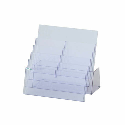 ●見た目すっきりチラシスタンド●狭いスペースでも1つのスタンドで、すっきり収納可能です。●チラシやパンフレットが、手前に垂れない様傾斜をつけています。●受付周囲、調剤薬局等でも便利に使用可能です。●カルテ用紙、伝票類の整理にも使用可能です。●サイズ(mm):444*290*412●材質:PVC(塩化ビニル樹脂)●有効内寸法:219*25*185mm/1スペース●1スペース収納枚数:コピー用紙約250枚●事業者向け商品です。リニューアルに伴い、パッケージ・内容等予告なく変更する場合がございます。予めご了承ください。広告文責:楽天グループ株式会社050-5212-8316