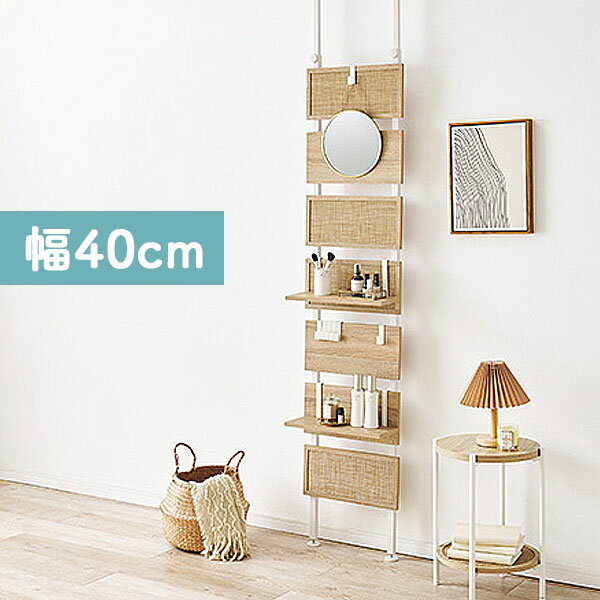 商品説明 サイズ(cm) W40×D21.5×H200?265 材質仕様 [材質] フレーム:スチール 壁板/棚板:プリント紙化粧繊維 組立式 ナチュラルのラタン調ボードがおしゃれなアクセントに。お部屋のいろいろな場所に設置できる突っ張り式ラック♪ 送料 送料無料 ただし、北海道、沖縄、離島、その他一部地域は追加料金がかかります。お気軽にお問合せ下さい。