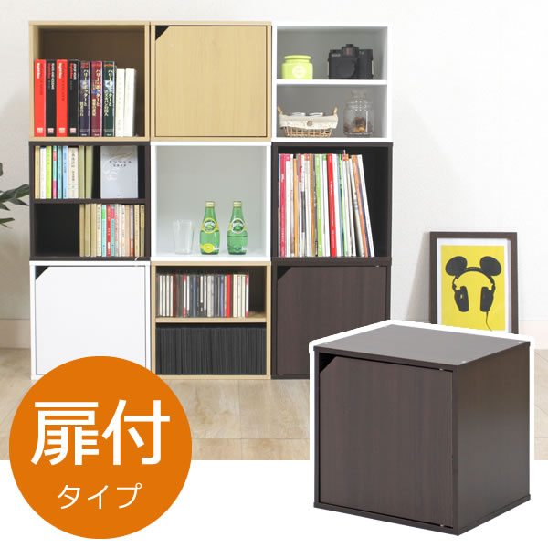 レイアウトは自由自在、組み合わせ収納並べて、重ねて、自由にレイアウトできる収納ボックス。隠す収納ができる扉付きタイプ。しっかりと閉まるマグネット付き扉です。お部屋に合わせて、自分好みの収納ラックに。積み重ねは3段までOK。本の収納、雑貨の整理に。お客様組み立て(プラスドライバー必要)キューブボックスシリーズ(オープン・棚付・扉付)を組み合わせて、幅広いレイアウトが楽しめます。※こちらの商品は、単品販売となります。サイズ幅34.5×奥行29.5×高さ34.5cm材質プリント紙化粧パーティクルボード板厚12mm品番CB35DR製造国マレーシアメーカー不二貿易関連キーワード: カラボ 一個 単品 単体 cube box レイアウト自由 木目 ナチュラル ブラウン ダークブラウン 白 ホワイト インテリア 小物 収納 台 ディスプレイ ドア付 扉付 子供部屋 TV台 テレビ台 本棚 積み重ね 花台 漫画 マンガ 階段状 キャビネット タンス 家具 収納棚 A4 書類 整理 飾り棚 マガジンラック 寝室 一人暮らし 見せない収納 幅 35 cm センチ お洒落 人気 スタッキング 隠す収納 4953980819055 4953980819062 4953980819079