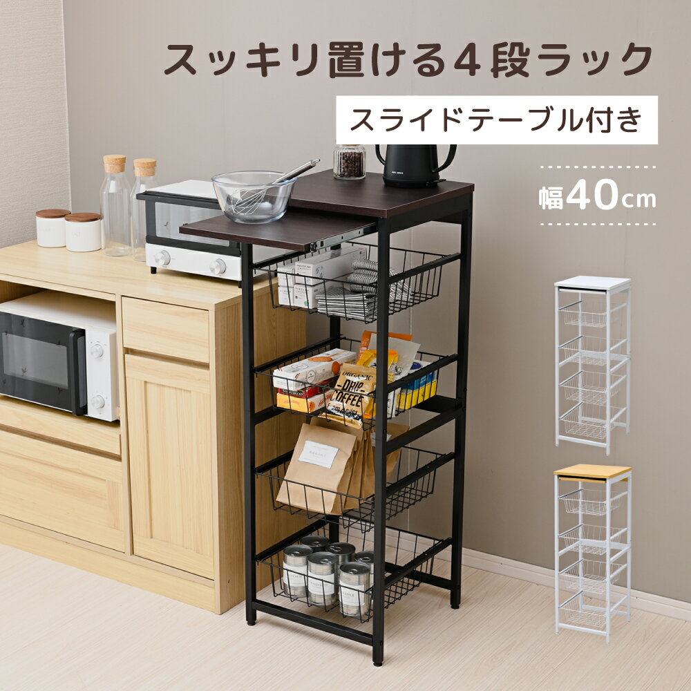 項目 内容 商品名 Varel / スチールキッチンシリーズ バスケット収納ラック 4段 幅40cm サイズ ・本体外寸:幅約40.5×奥行約40.5×高さ約110.5cm ・スライドテーブル:幅約33×奥行約26cm ・バスケット:幅約27×奥行約32.5×高さ約10cm 耐荷重 ・天板:15kg ・スライドテーブル:3kg ・バスケット:3kg 材質 ・天板、スライドテーブル:合成樹脂化粧繊維板(PVC) ・フレーム:鉄 梱包数 1 備考 ・お客様組立品です。付属の六角レンチ、ドライバーをお使いください。 ・実際の商品の色にできるだけ近づけるよう撮影を行っておりますが、お使いのモニターによって商品の明るさや色が多少異なって見える場合がございます。 ・配送料金は地域により異なる場合があります。 ・商品の仕様は予告なく変更になる場合があります。 ・本商品は当店オリジナル商品です。 【関連ワード】moca company ヴァレル キッチン収納ラック キッチン収納棚 キッチン整理棚 キッチンストッカー すき間収納 冷蔵庫横 収納 ラック 4段 バスケット収納 ラック メッシュラック 食品ストック スチールラック ランドリーラック 台所 洗面所 脱衣所 収納 マルチ収納ラック ワンルーム 一人暮らし アイアン スチール 省スペース 幅40 奥行き40 高さ110 白 アイボリー 新生活