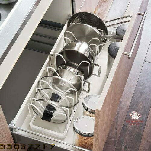 シンク下にフィット伸縮できるからシンク下のスペースに合わせてピッタリフィットするフライパン&鍋蓋スタンド!鍋やフライパンのサイズに合わせて仕切りパーツの位置は3cmごとに調整可能。持ち手が上になるから取り出しやすい持ち手置き付き!下に空いたスペースができるから収納力もアップします。組立式■ 商品サイズ約32×20×17.5cm■ 商品重量約940g■ 対応サイズ約18?30cmまでの鍋(鍋蓋)・フライパン■ 耐熱80■ 耐冷-40■ 品質表示本体:ABS樹脂 仕切りパーツ:スチール(粉体塗装)■ 付属品持ち手置き(×1):スチール(粉体塗装) ストッパー(×2):シリコーンシンク下にフィット伸縮できるからシンク下のスペースに合わせてピッタリフィットするフライパン&鍋蓋スタンド!鍋やフライパンのサイズに合わせて仕切りパーツの位置は3cmごとに調整可能。持ち手が上になるから取り出しやすい持ち手置き付き!下に空いたスペースができるから収納力もアップします。組立式■ 商品サイズ約32×20×17.5cm■ 商品重量約940g■ 対応サイズ約18?30cmまでの鍋(鍋蓋)・フライパン■ 耐熱80■ 耐冷-40■ 品質表示本体:ABS樹脂 仕切りパーツ:スチール(粉体塗装)■ 付属品持ち手置き(×1):スチール(粉体塗装) ストッパー(×2):シリコーン