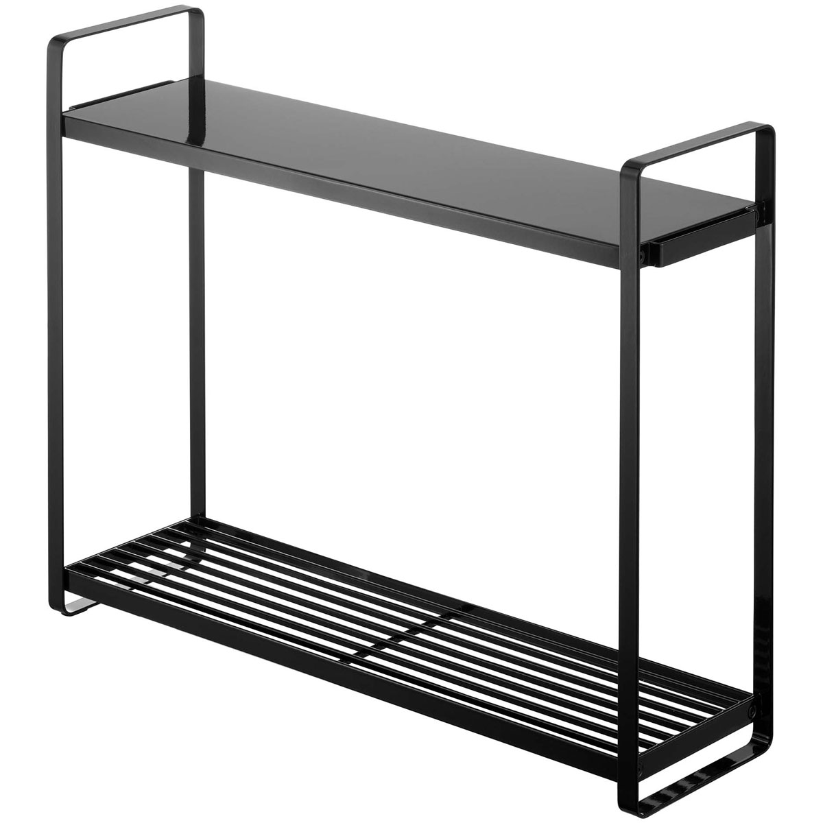鍋からケトルまで一括収納で便利! 調味料ストッカーやキャニスター、鍋やケトルまで一括収納できる便利な2段棚のキッチン収納、TOWER コンロ横ラック2段。見た目もシンプルなデザイン。奥行約14cmだからコンロ横にスッキリ収まるサイズです。 見た目もシンプルなデザインです! 上の棚は平らになっているので細かいものを収納できます。下の段にはケトルやお鍋、調味料ボトルなど大きめのものや高さのあるものを収納しやすいように設計。引っ掛け収納に便利な合計3つのフック付きです。 商品の情報 ・ブランド:YAMAZAKI(山崎実業)/日本 ・ジャンル:収納ラック ・主な素材:スチール 粉体塗装 ・生産国:中国 ・サイズ:約W510xD140xH400mm(本体)/約W480xD135mm(上段棚内寸)/約W480xD135xH300mm(下段棚内寸) ・重量:約1.8kg ・耐荷重:約2kg(上段)/約5kg(下段)/約250g(フック1つあたり) ・内容物:本体/フック x3 ・その他:お客様組立て品となります。 この商品の仲間たち 山崎実業 TOWER コンロ横ラック2段 ホワイト 山崎実業 TOWER コンロ横ラック2段 ブラック